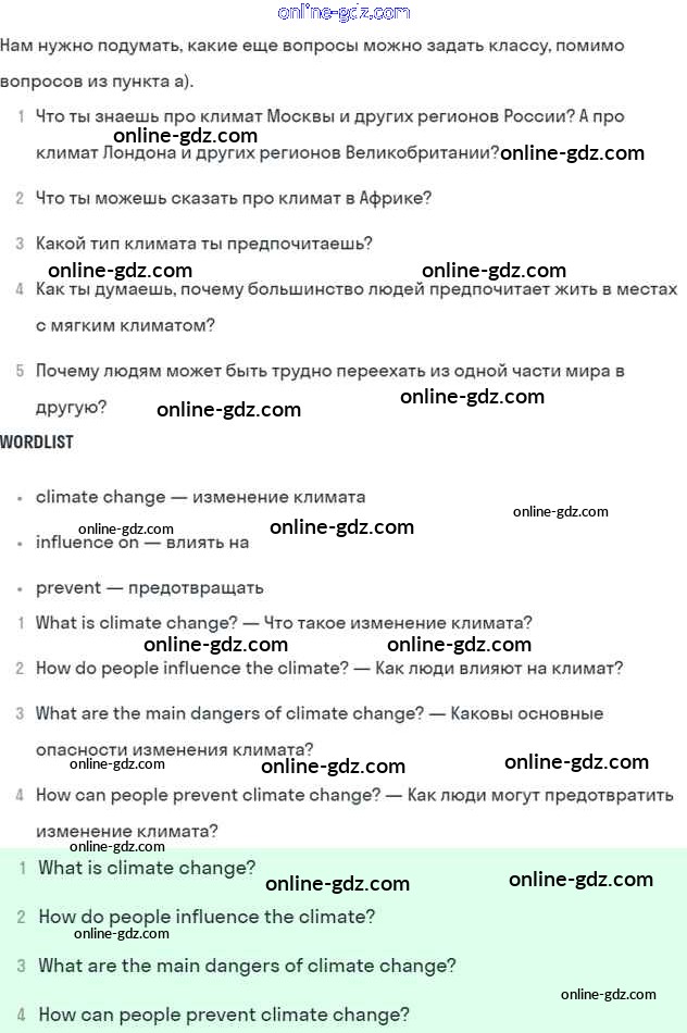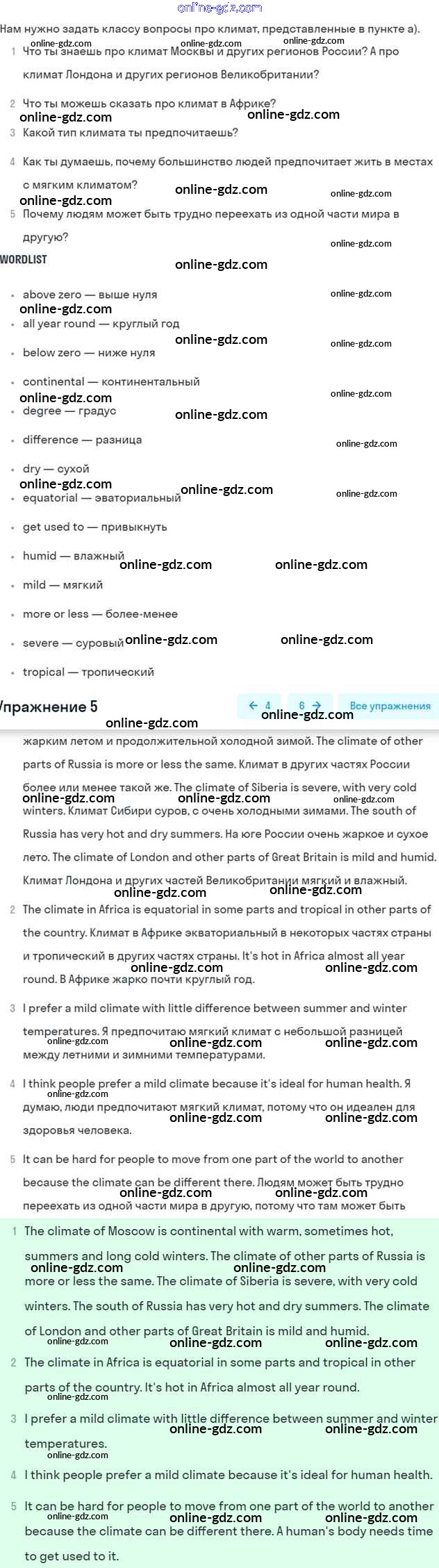 Готовые домашние задания по Английскому языку за 6 класс Учебник Афанасьева, Михеева Углубленный уровень 2016 - Unit 2. Climate Часть 1 5