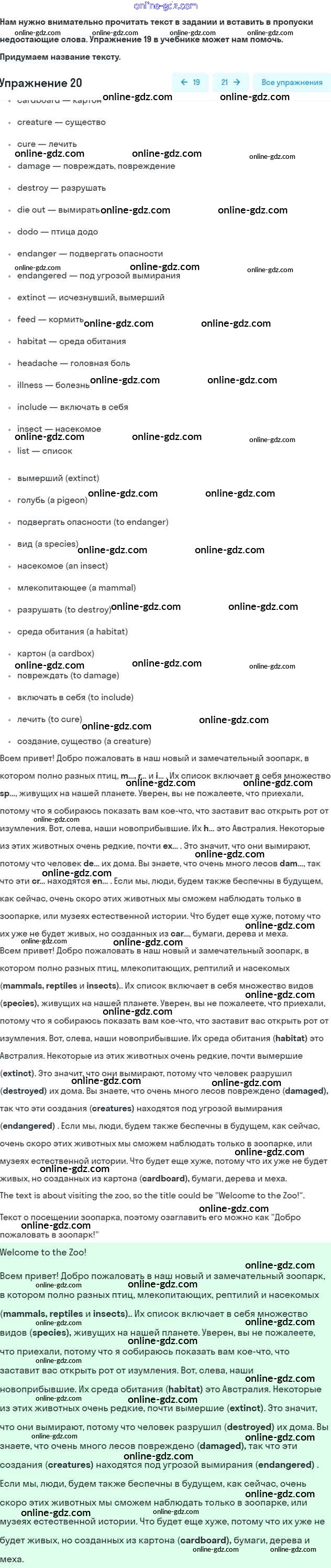 Готовые домашние задания по Английскому языку за 6 класс Учебник Афанасьева, Михеева Углубленный уровень 2016 - Unit 3. The natural world Часть 1 20