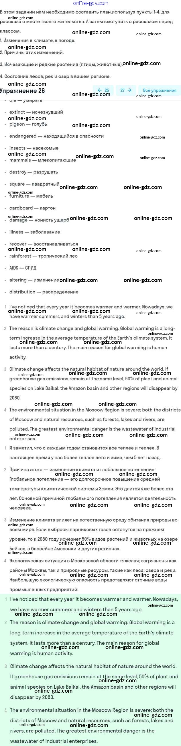 Готовые домашние задания по Английскому языку за 6 класс Учебник Афанасьева, Михеева Углубленный уровень 2016 - Unit 3. The natural world Часть 1 26