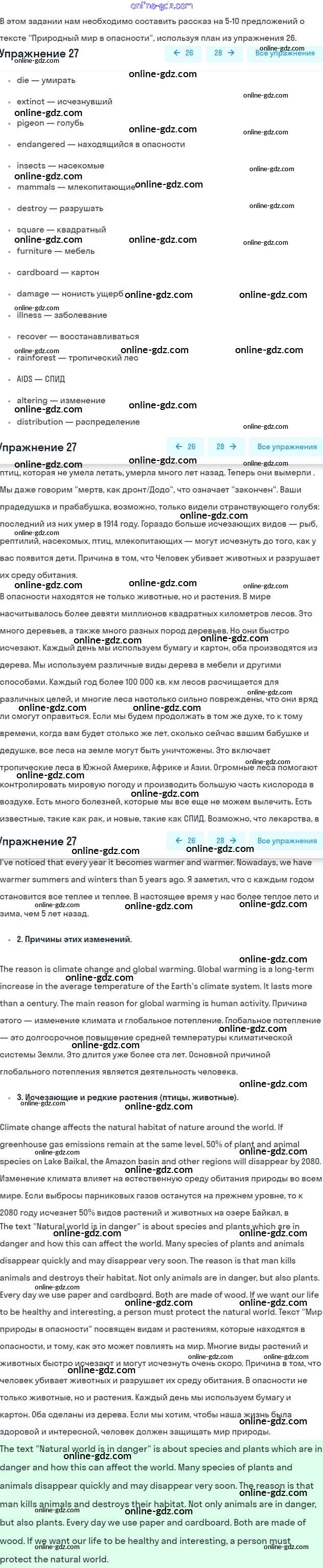 Готовые домашние задания по Английскому языку за 6 класс Учебник Афанасьева, Михеева Углубленный уровень 2016 - Unit 3. The natural world Часть 1 27