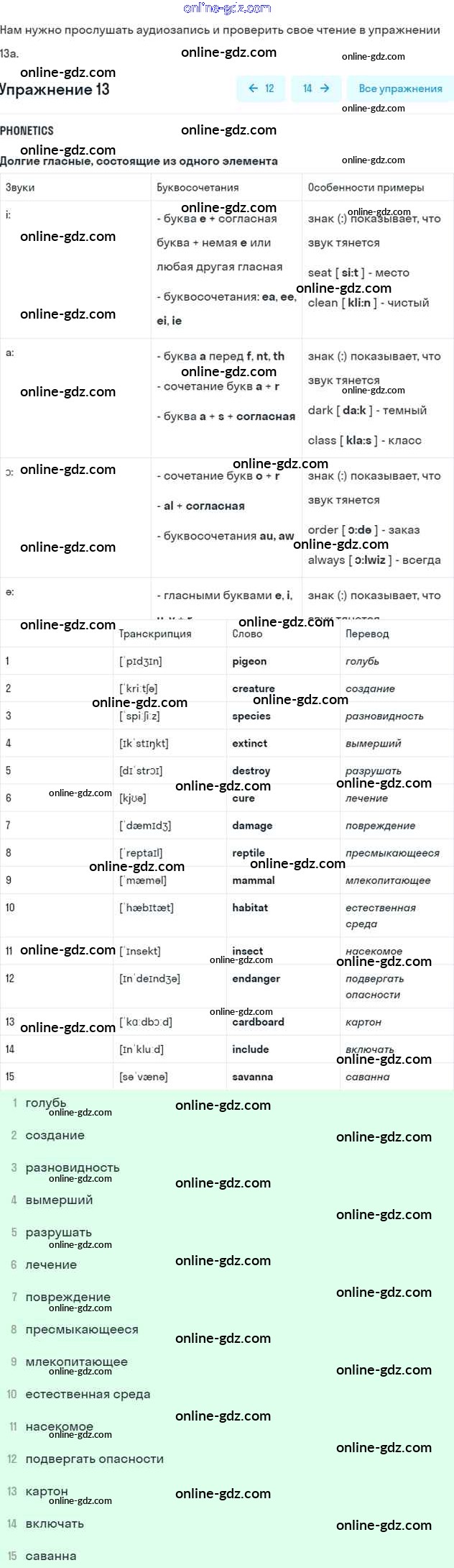 Готовые домашние задания по Английскому языку за 6 класс Учебник Афанасьева, Михеева Углубленный уровень 2016 - Unit 4. Man and the Natural World Часть 1 13