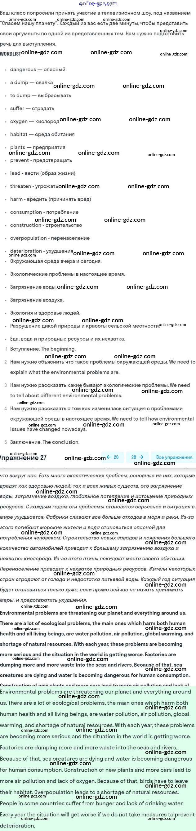 Готовые домашние задания по Английскому языку за 6 класс Учебник Афанасьева, Михеева Углубленный уровень 2016 - Unit 4. Man and the Natural World Часть 1 27