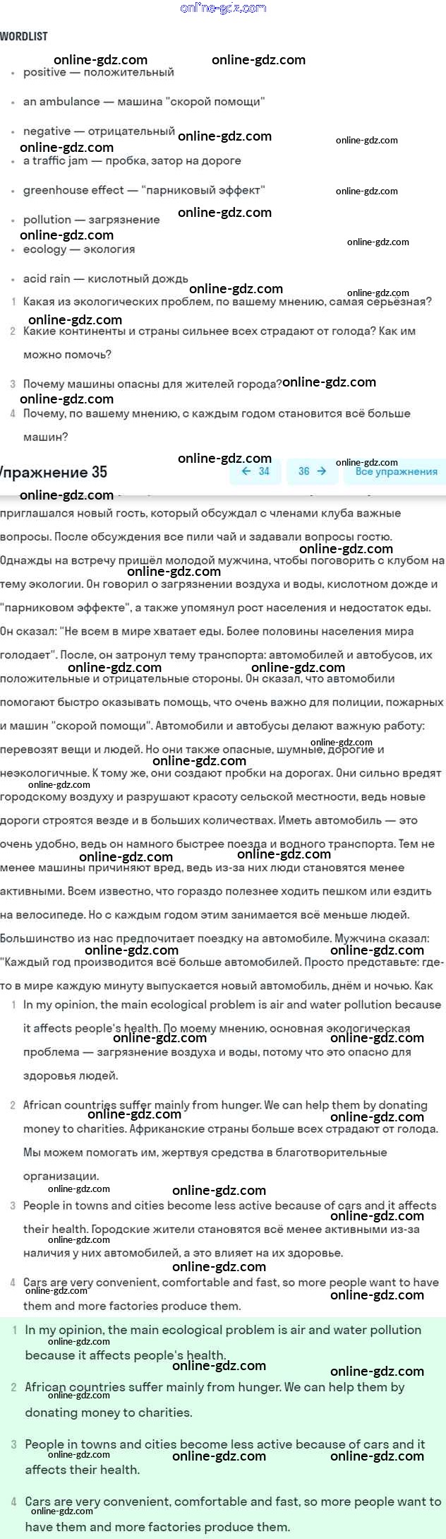 Готовые домашние задания по Английскому языку за 6 класс Учебник Афанасьева, Михеева Углубленный уровень 2016 - Unit 4. Man and the Natural World Часть 1 35