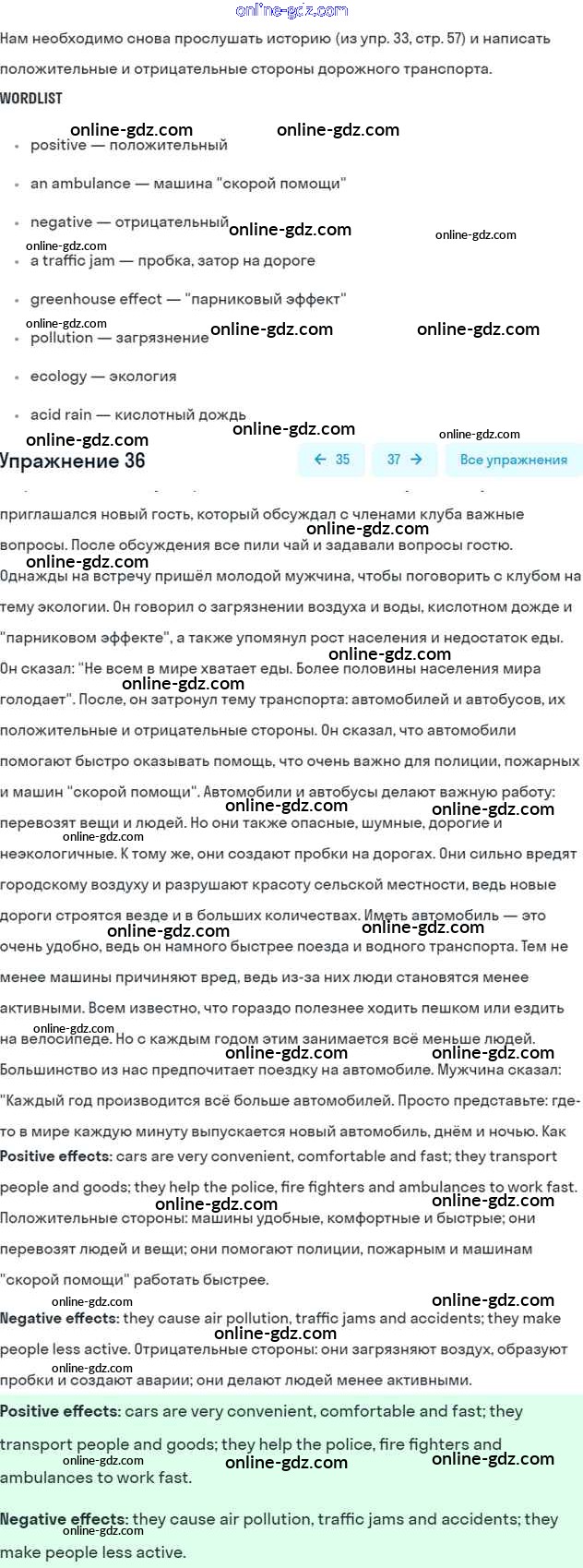 Готовые домашние задания по Английскому языку за 6 класс Учебник Афанасьева, Михеева Углубленный уровень 2016 - Unit 4. Man and the Natural World Часть 1 36