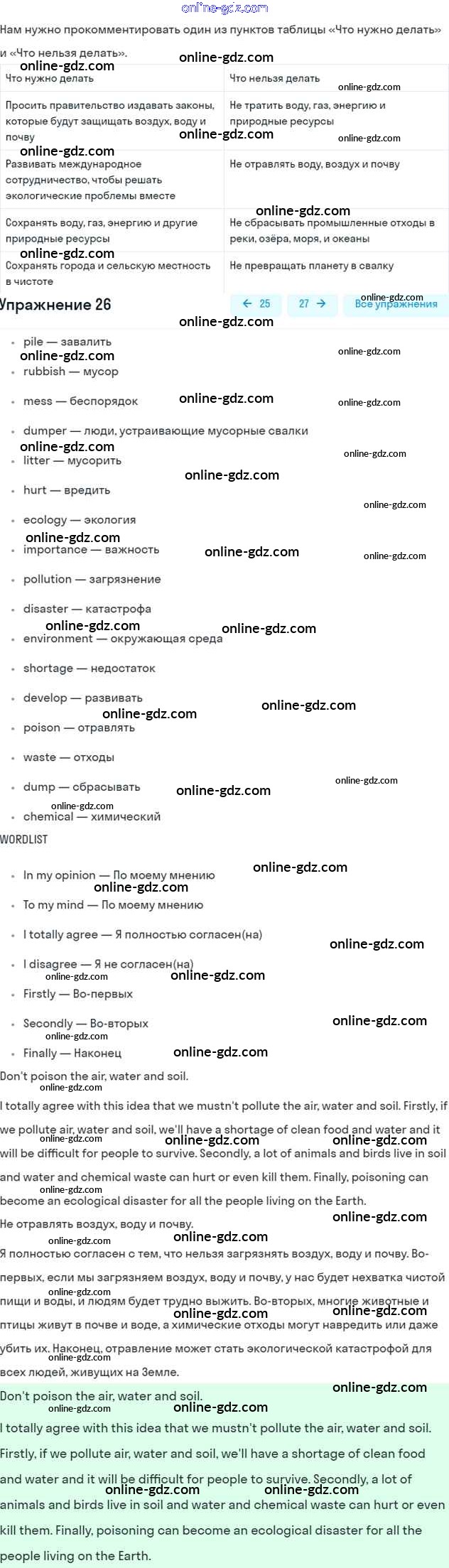 Готовые домашние задания по Английскому языку за 6 класс Учебник Афанасьева, Михеева Углубленный уровень 2016 - Unit 5. Ecology Часть 1 26