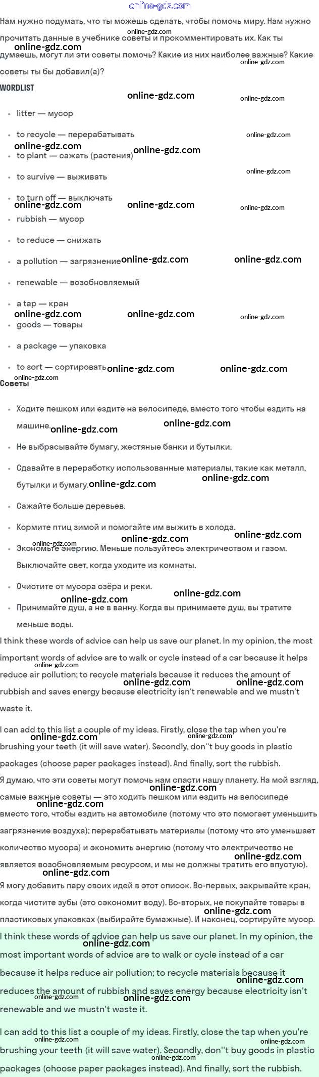 Готовые домашние задания по Английскому языку за 6 класс Учебник Афанасьева, Михеева Углубленный уровень 2016 - Unit 5. Ecology Часть 1 28