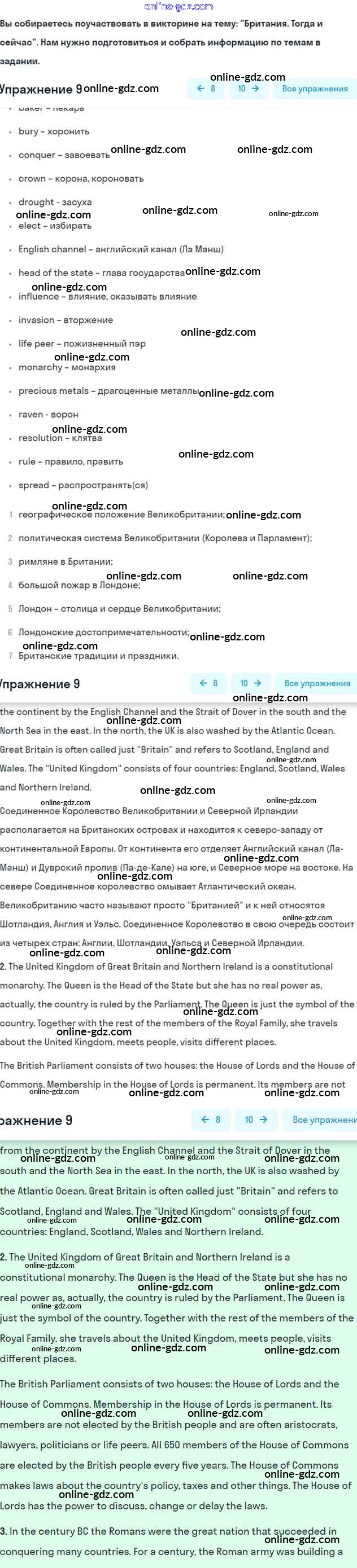 Готовые домашние задания по Английскому языку за 6 класс Учебник Афанасьева, Михеева Углубленный уровень 2016 - Unit 7. How much do we know about Britain Часть 1 9