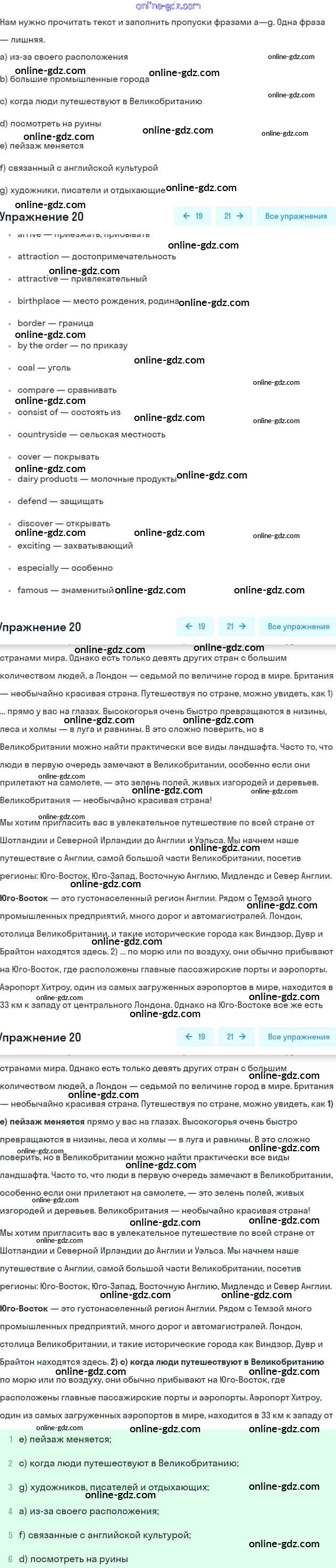 Готовые домашние задания по Английскому языку за 6 класс Учебник Афанасьева, Михеева Углубленный уровень 2016 - Unit 8. England Часть 1 20