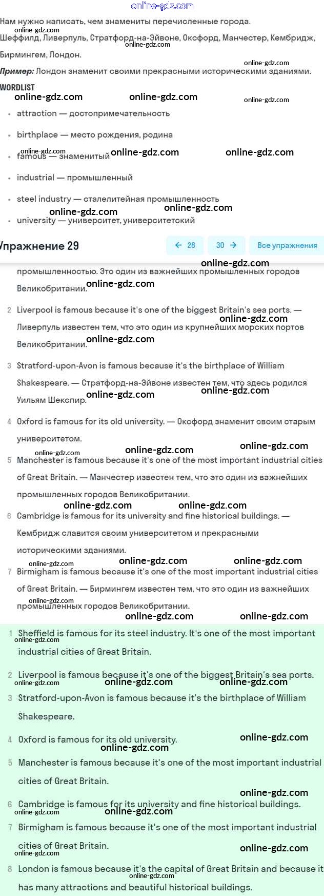 Готовые домашние задания по Английскому языку за 6 класс Учебник Афанасьева, Михеева Углубленный уровень 2016 - Unit 8. England Часть 1 29