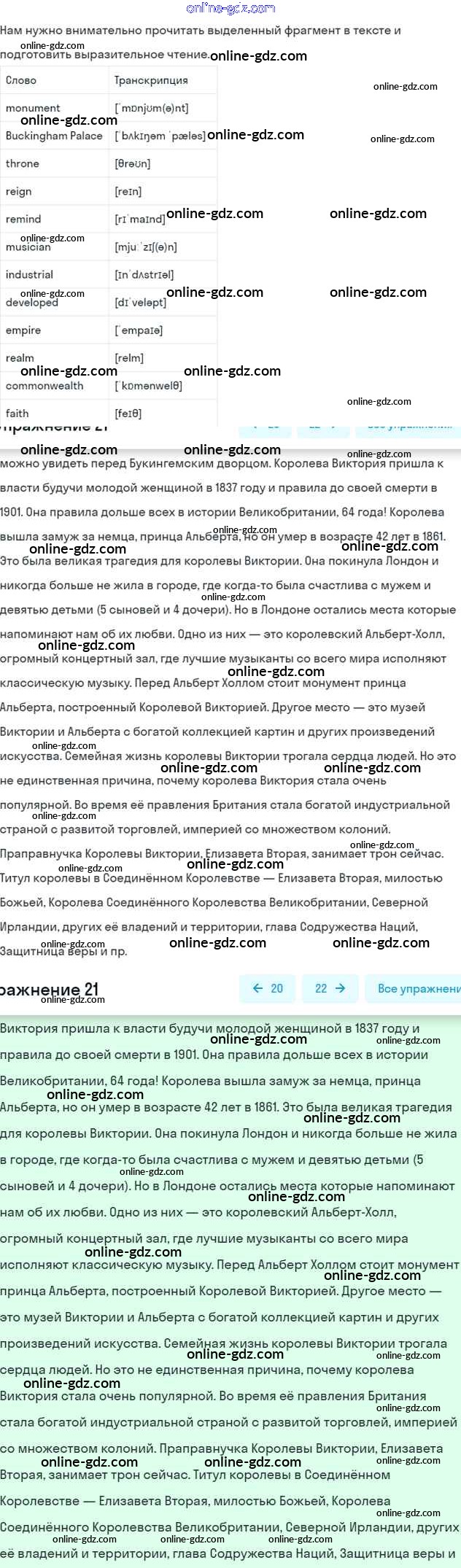 Готовые домашние задания по Английскому языку за 6 класс Учебник Афанасьева, Михеева Углубленный уровень 2016 - Unit 9. England Часть 1 21