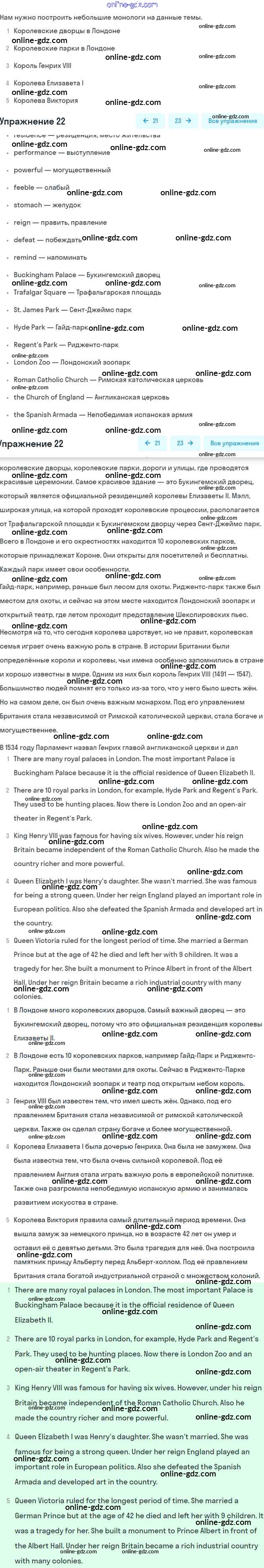Готовые домашние задания по Английскому языку за 6 класс Учебник Афанасьева, Михеева Углубленный уровень 2016 - Unit 9. England Часть 1 22