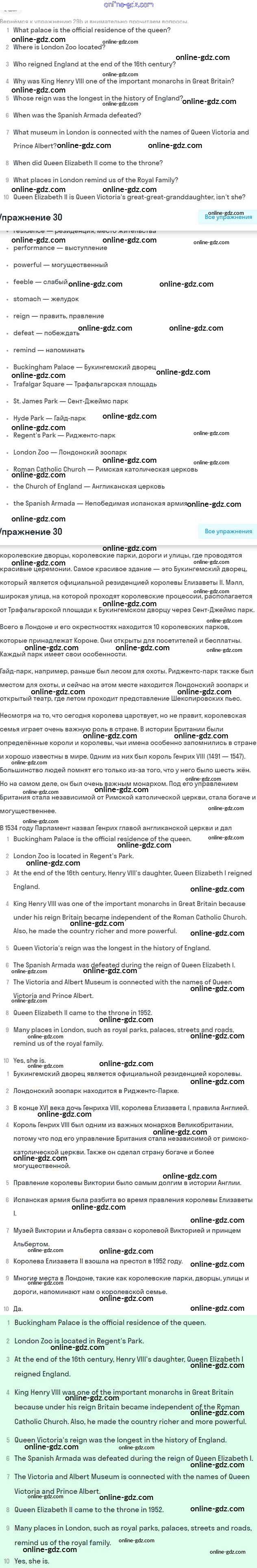 Готовые домашние задания по Английскому языку за 6 класс Учебник Афанасьева, Михеева Углубленный уровень 2016 - Unit 9. England Часть 1 30