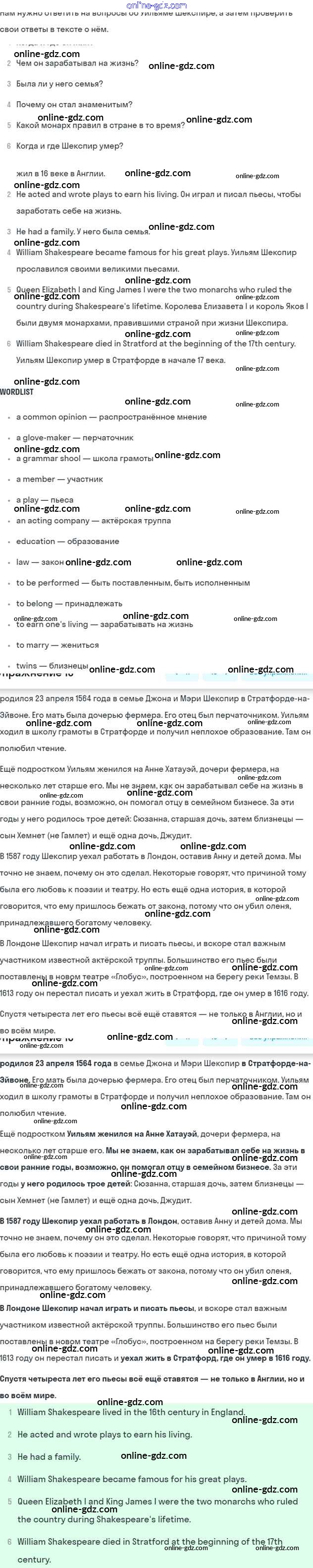 Готовые домашние задания по Английскому языку за 6 класс Учебник Афанасьева, Михеева Углубленный уровень 2016 - Unit 10. Shakespeare’s Land Часть 2 18
