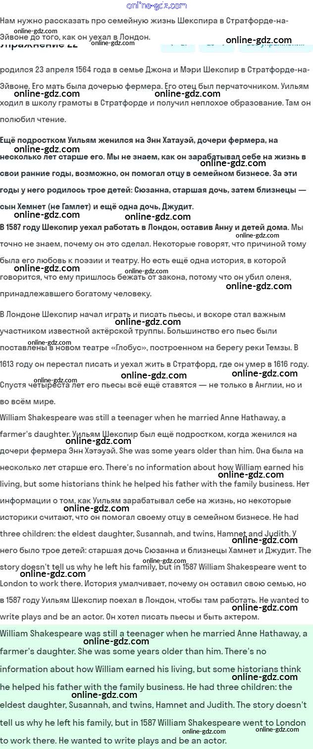 Готовые домашние задания по Английскому языку за 6 класс Учебник Афанасьева, Михеева Углубленный уровень 2016 - Unit 10. Shakespeare’s Land Часть 2 22