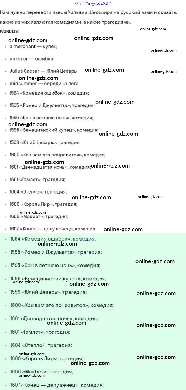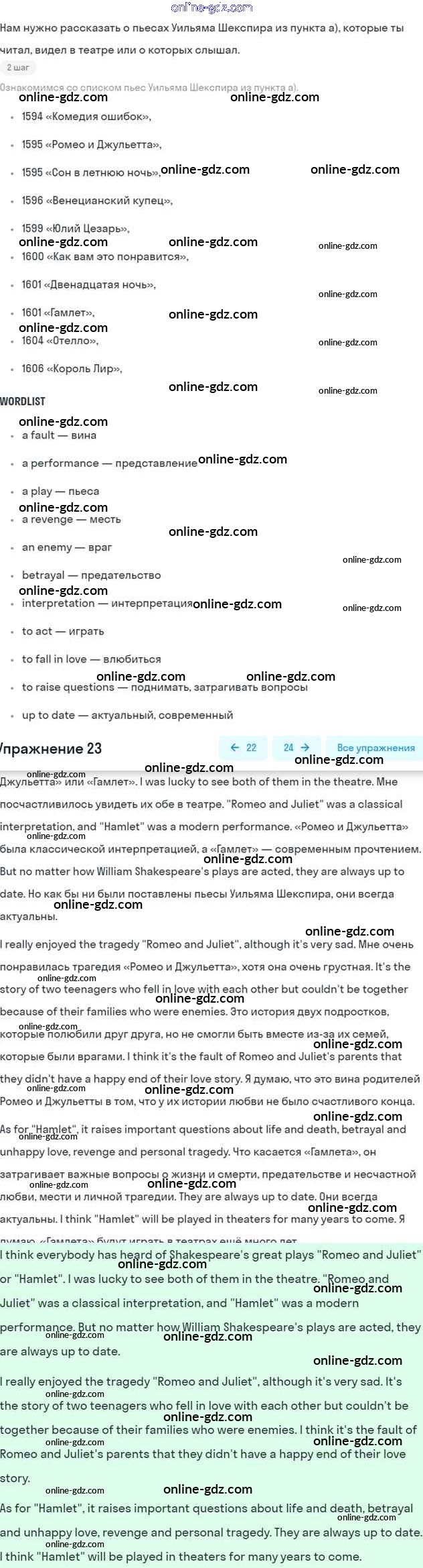 Готовые домашние задания по Английскому языку за 6 класс Учебник Афанасьева, Михеева Углубленный уровень 2016 - Unit 10. Shakespeare’s Land Часть 2 23