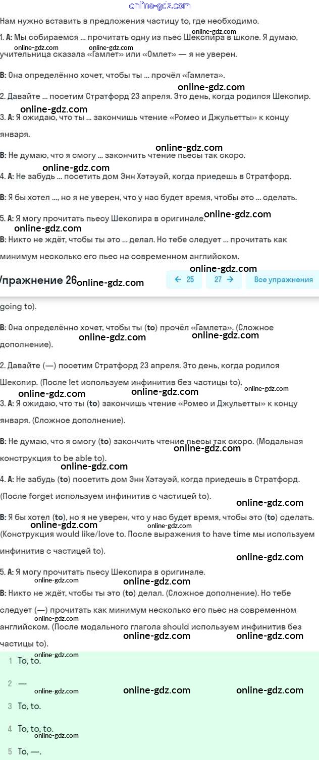 Готовые домашние задания по Английскому языку за 6 класс Учебник Афанасьева, Михеева Углубленный уровень 2016 - Unit 10. Shakespeare’s Land Часть 2 26