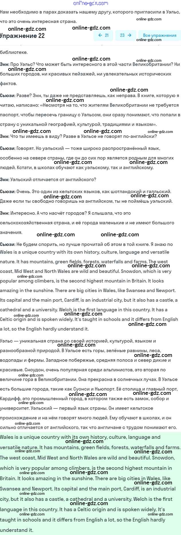 Готовые домашние задания по Английскому языку за 6 класс Учебник Афанасьева, Михеева Углубленный уровень 2016 - Unit 14. Wales Часть 2 22