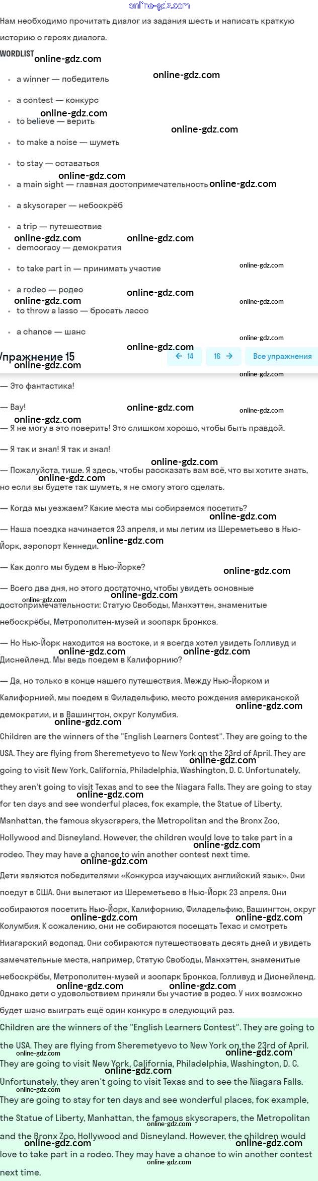 Готовые домашние задания по Английскому языку за 6 класс Учебник Афанасьева, Михеева Углубленный уровень 2016 - Unit 15. How Much Do We Know About the USA Часть 2 15