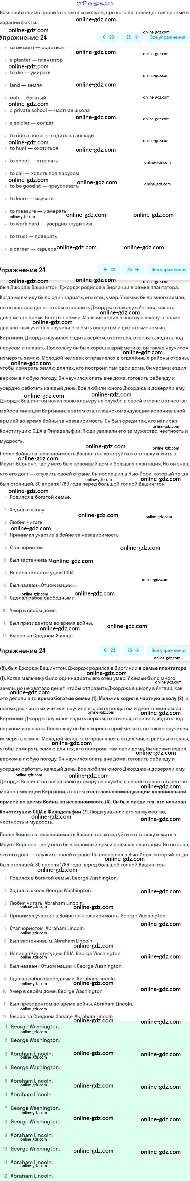 Готовые домашние задания по Английскому языку за 6 класс Учебник Афанасьева, Михеева Углубленный уровень 2016 - Unit 18. American President Часть 2 24