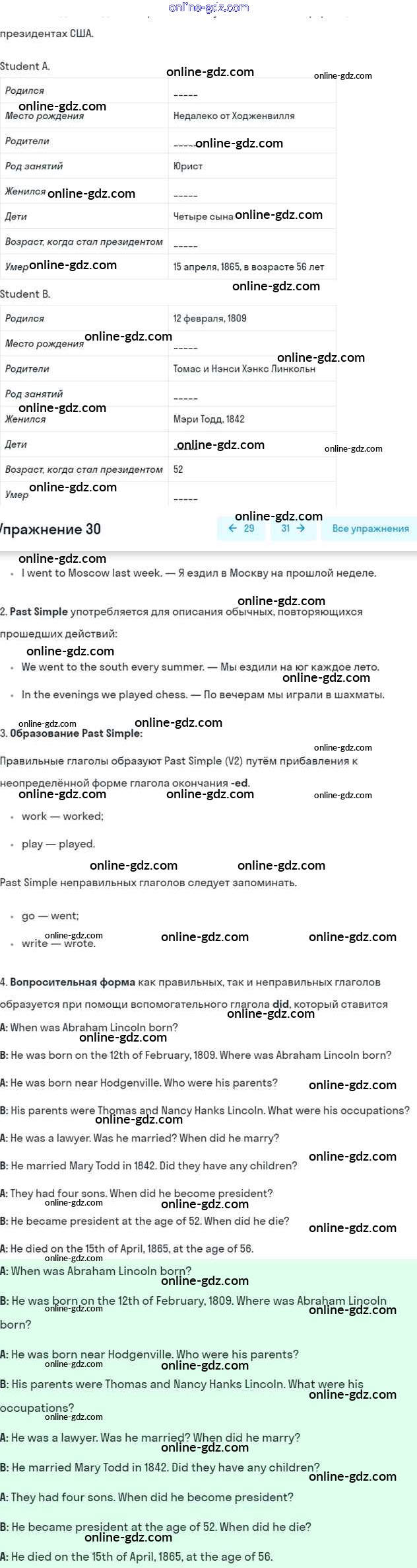 Готовые домашние задания по Английскому языку за 6 класс Учебник Афанасьева, Михеева Углубленный уровень 2016 - Unit 18. American President Часть 2 30