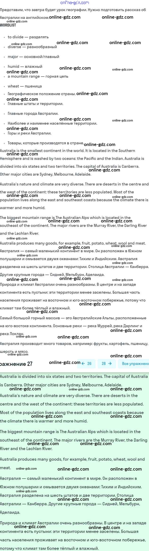 Готовые домашние задания по Английскому языку за 6 класс Учебник Афанасьева, Михеева Углубленный уровень 2016 - Unit 20. Geographical Outlook Часть 2 27