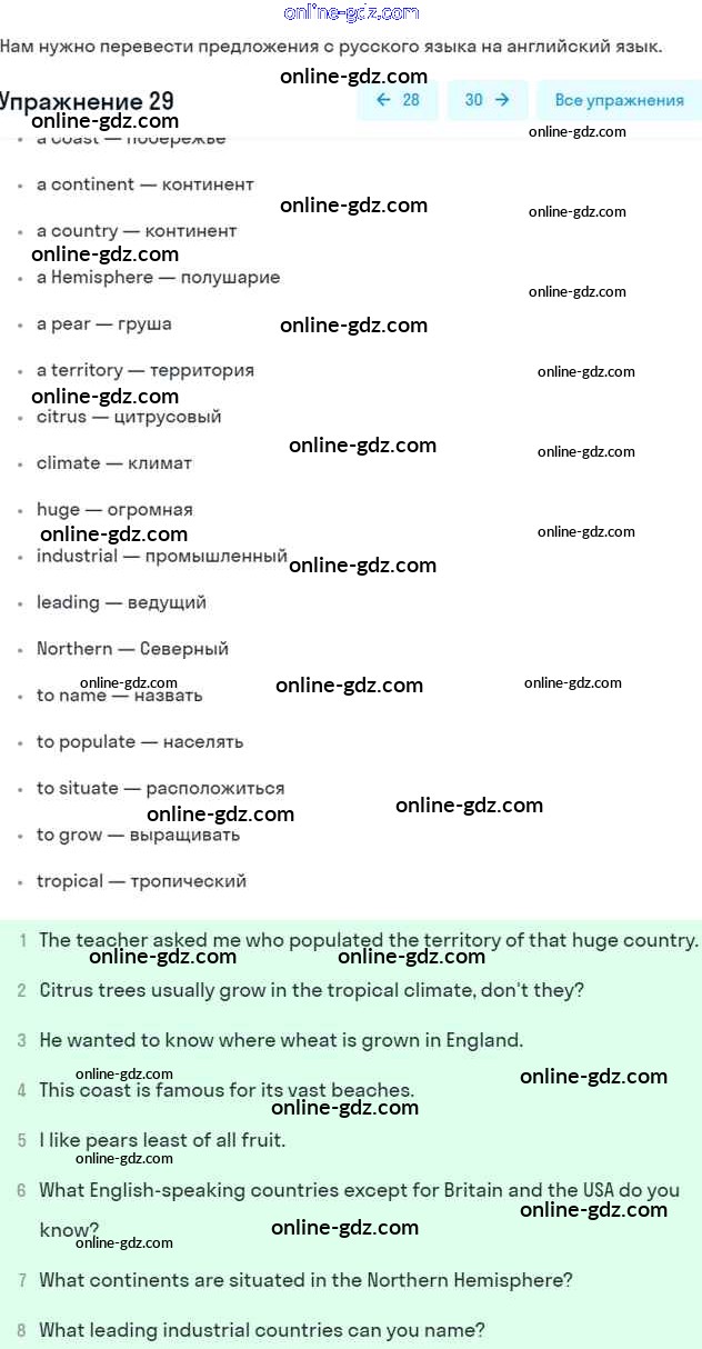 Готовые домашние задания по Английскому языку за 6 класс Учебник Афанасьева, Михеева Углубленный уровень 2016 - Unit 21. Climate and Wildlife Часть 2 29