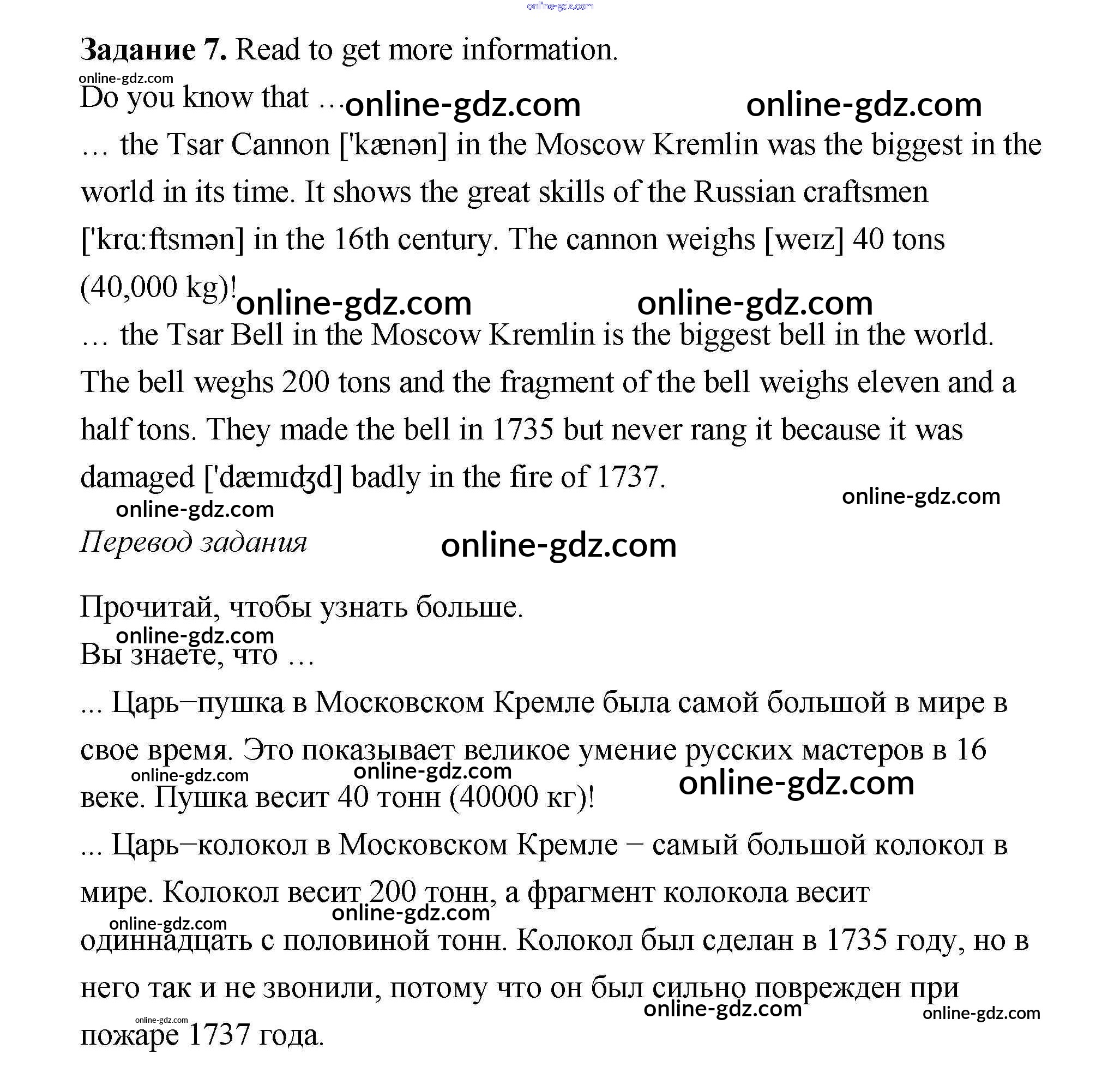 Готовые домашние задания по Английскому языку за 6 класс Учебник Афанасьева, Михеева Rainbow 2017 - Step 10 Unit 1 7