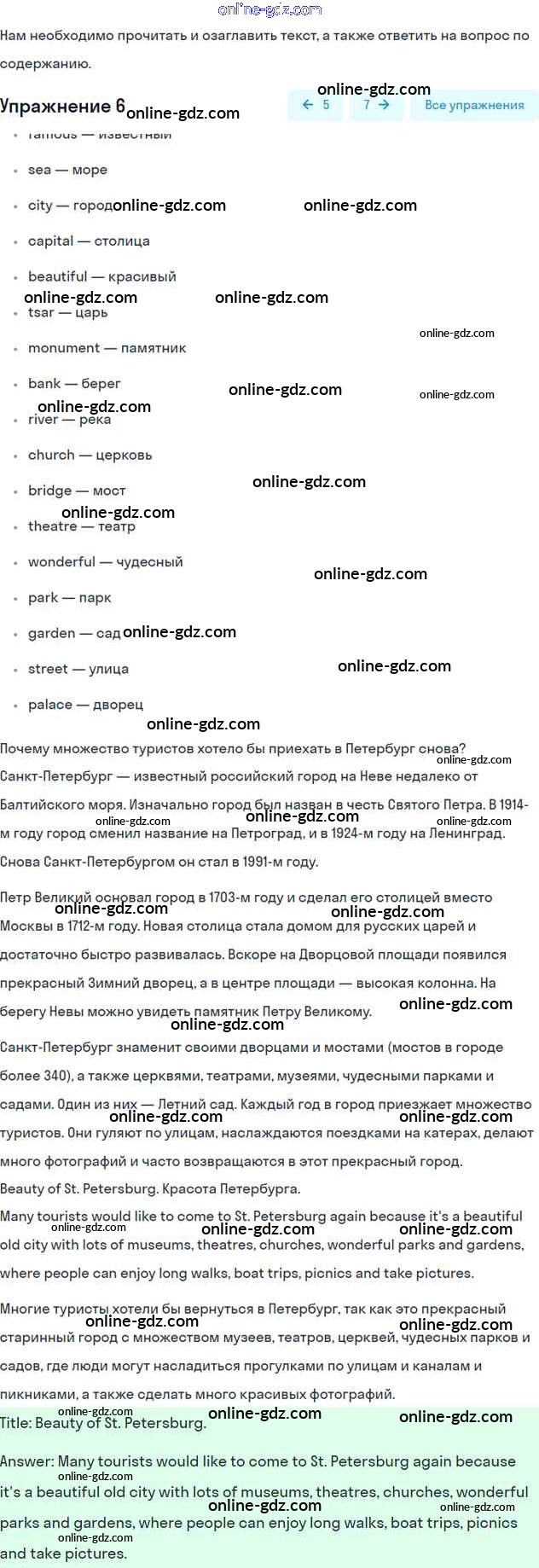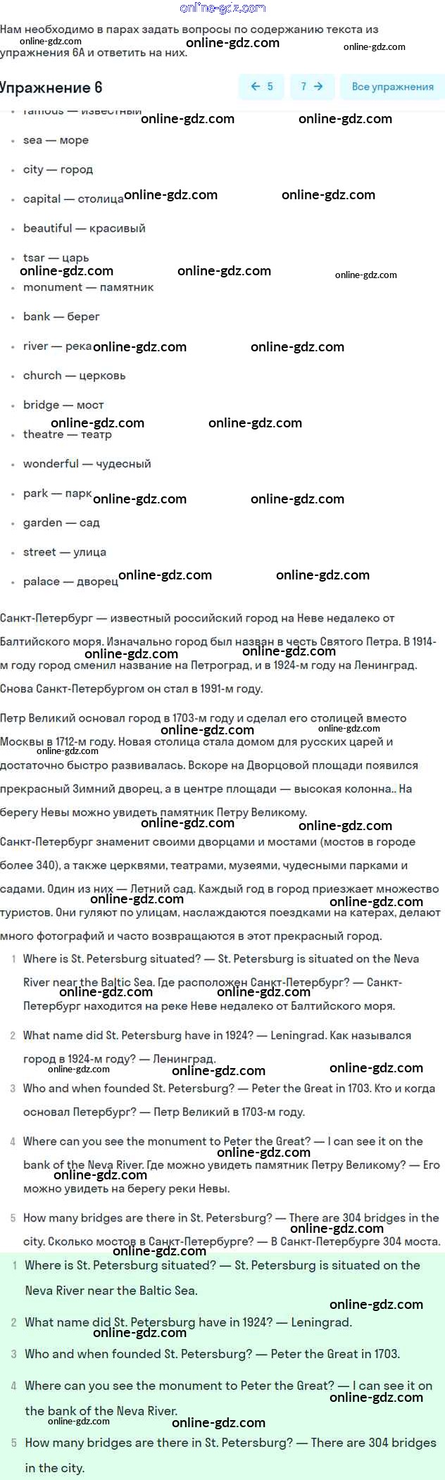 Готовые домашние задания по Английскому языку за 6 класс Учебник Афанасьева, Михеева Rainbow 2017 - Step 2 Unit 1 6