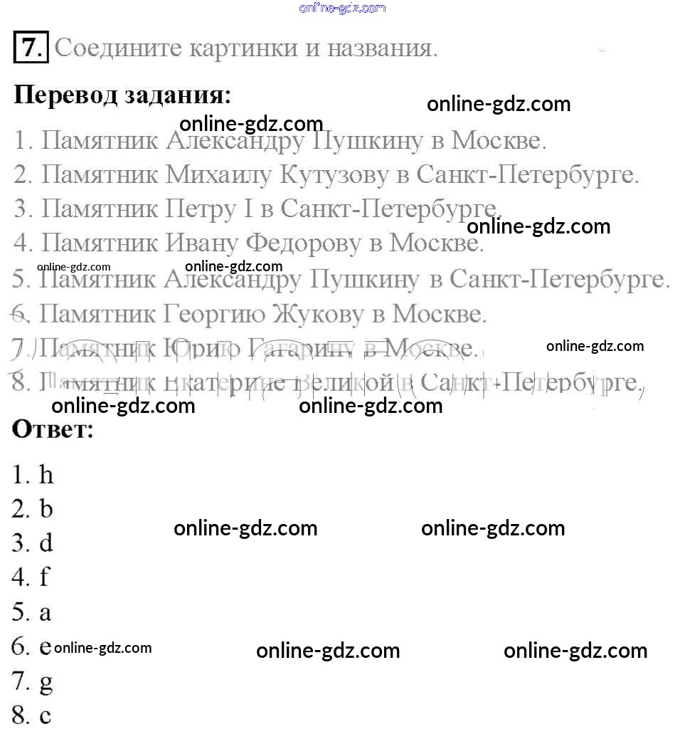 Готовые домашние задания по Английскому языку за 6 класс Учебник Афанасьева, Михеева Rainbow 2017 - Step 2 Unit 1 7