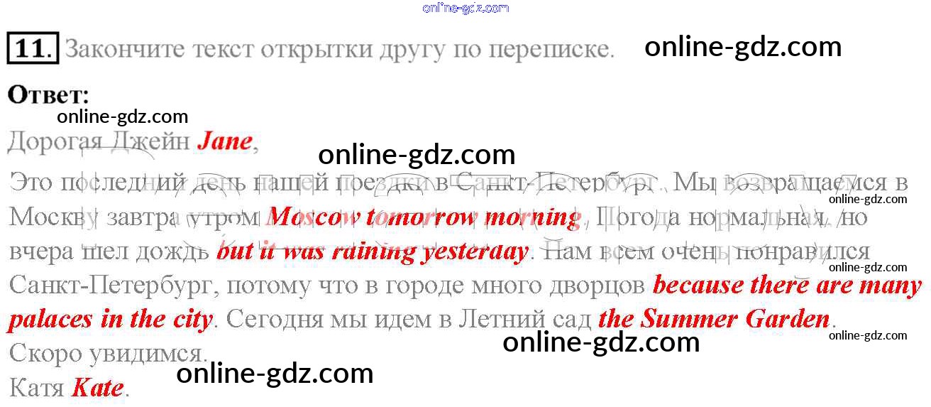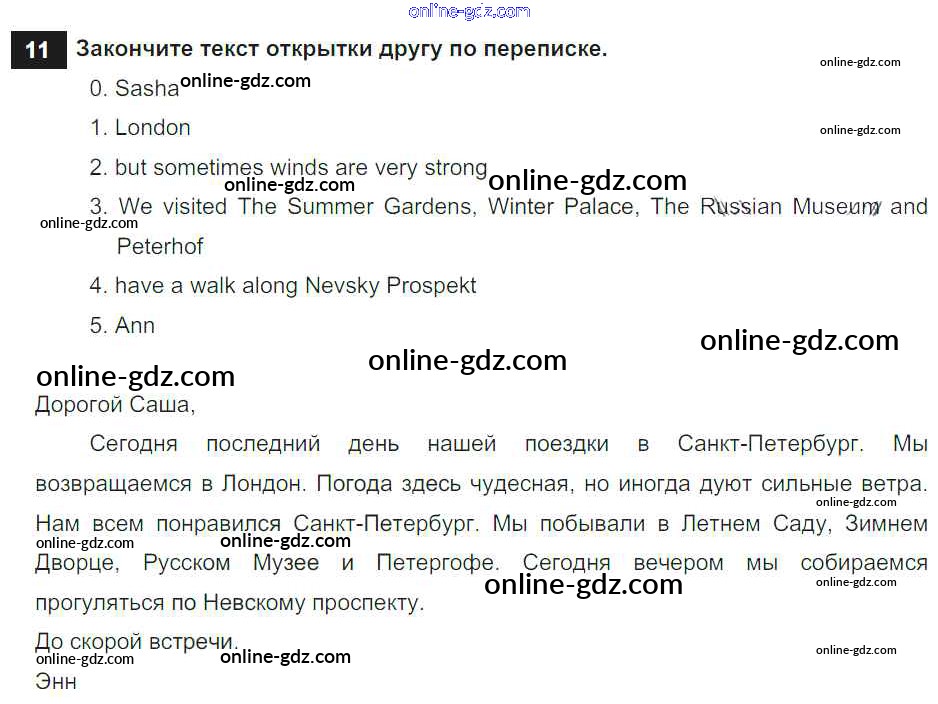 Готовые домашние задания по Английскому языку за 6 класс Учебник Афанасьева, Михеева Rainbow 2017 - Step 3 Unit 1 11
