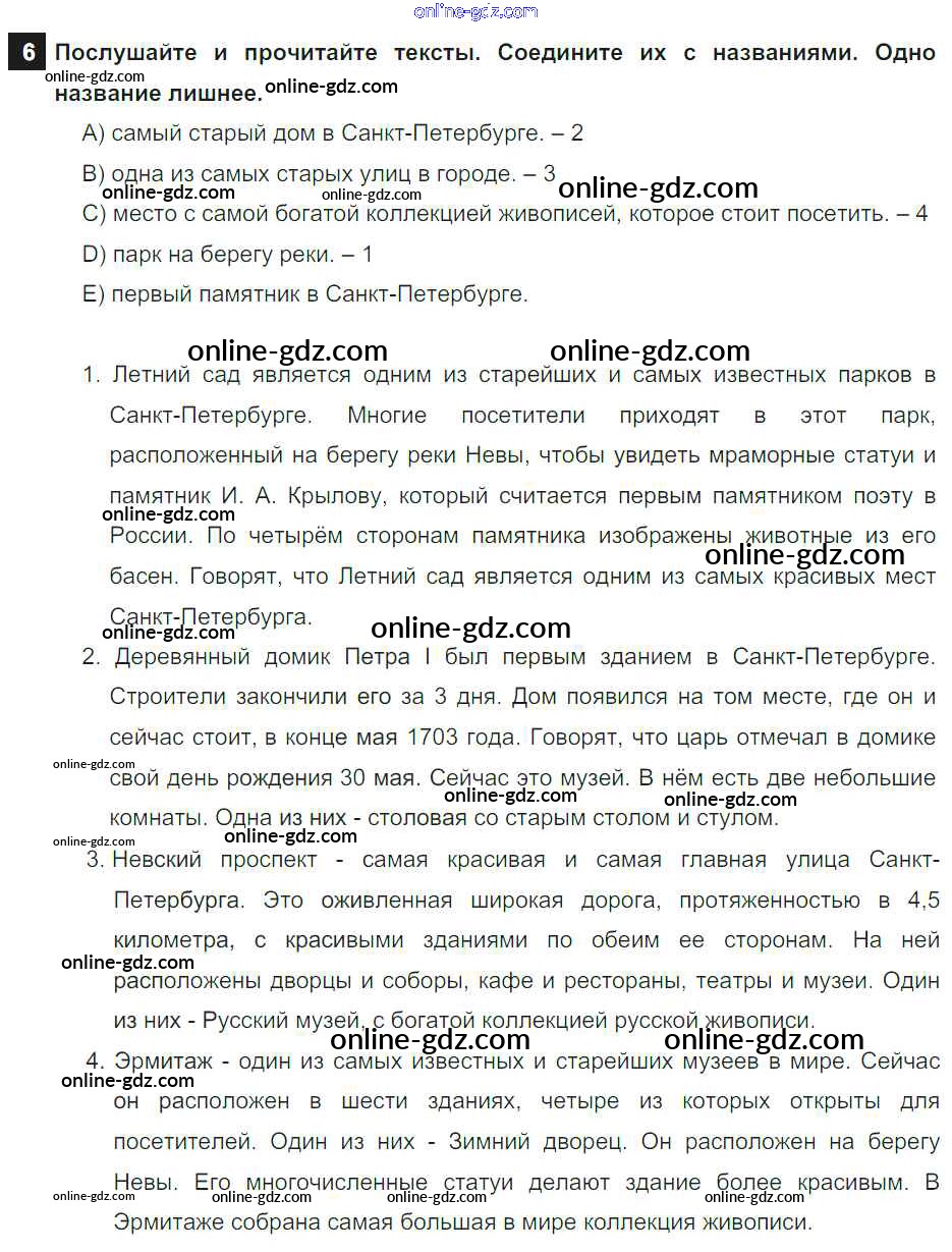 Готовые домашние задания по Английскому языку за 6 класс Учебник Афанасьева, Михеева Rainbow 2017 - Step 4 Unit 1 6