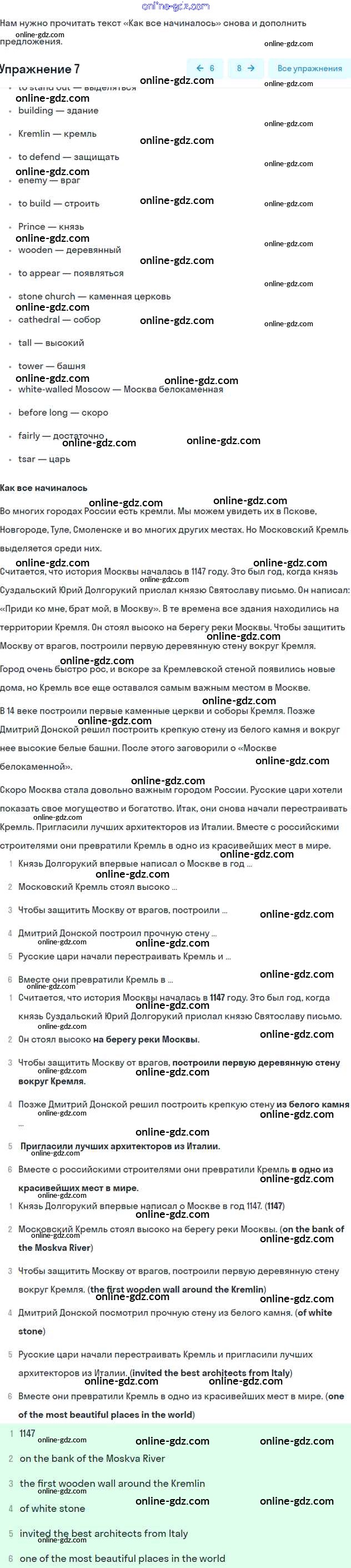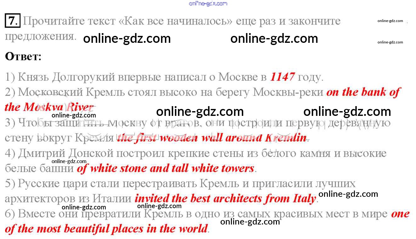 Готовые домашние задания по Английскому языку за 6 класс Учебник Афанасьева, Михеева Rainbow 2017 - Step 5 Unit 1 7