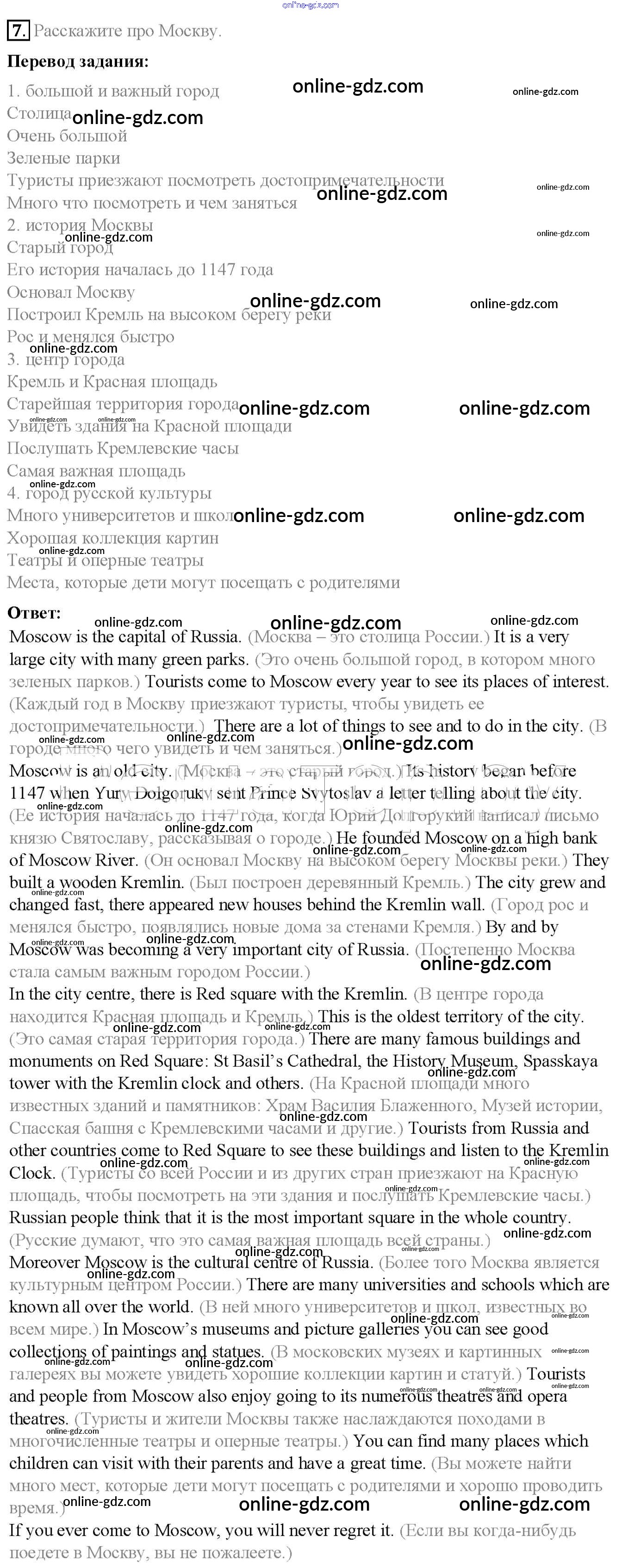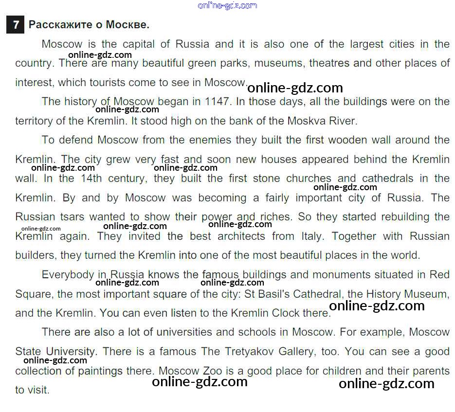 Готовые домашние задания по Английскому языку за 6 класс Учебник Афанасьева, Михеева Rainbow 2017 - Step 7 Unit 1 7