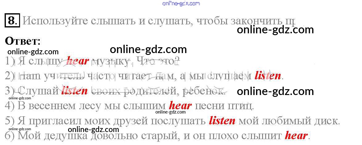 Готовые домашние задания по Английскому языку за 6 класс Учебник Афанасьева, Михеева Rainbow 2017 - Step 7 Unit 1 8