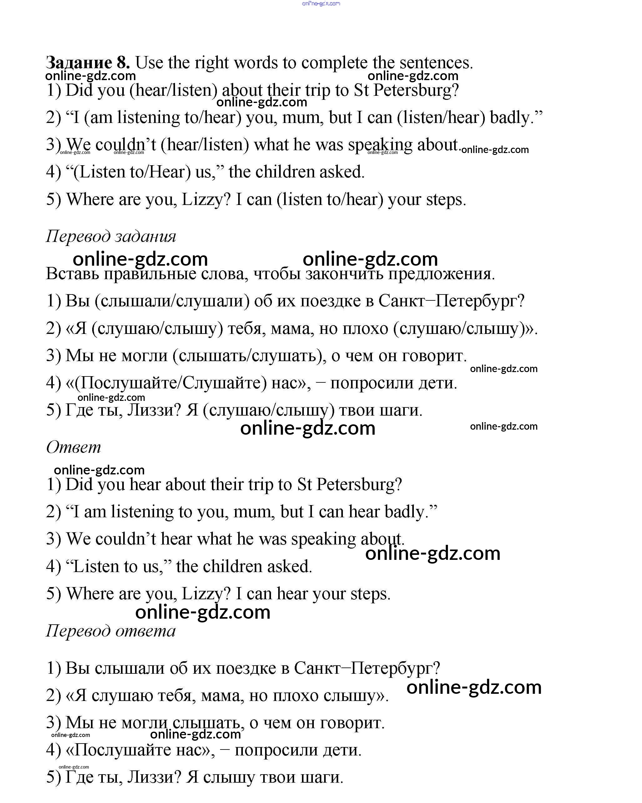 Готовые домашние задания по Английскому языку за 6 класс Учебник Афанасьева, Михеева Rainbow 2017 - Step 8 Unit 1 8