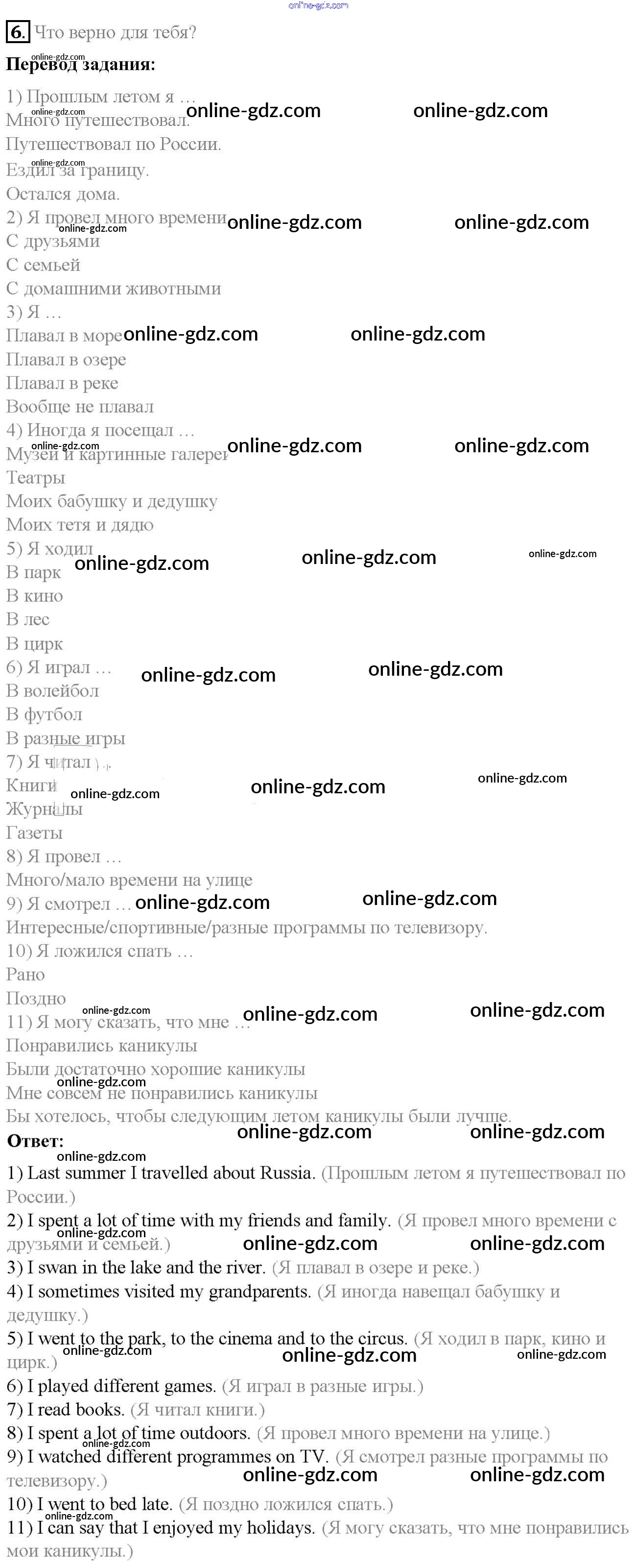 Готовые домашние задания по Английскому языку за 6 класс Учебник Афанасьева, Михеева Rainbow 2017 - Step 1 Unit 2 6