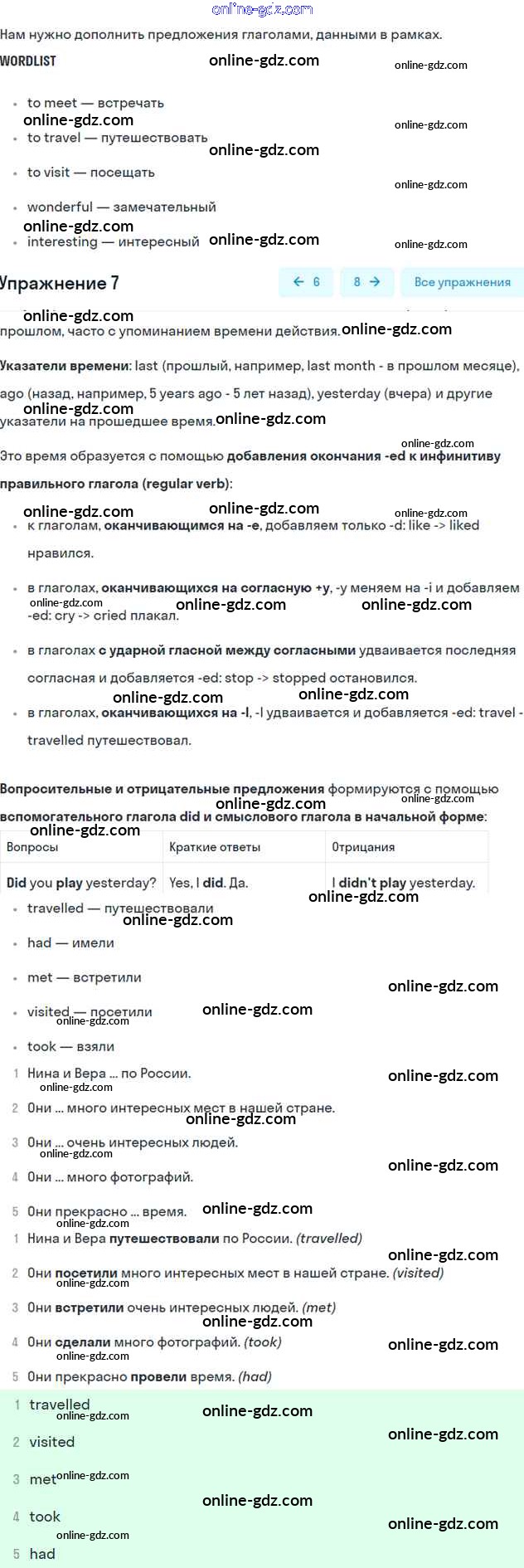 Готовые домашние задания по Английскому языку за 6 класс Учебник Афанасьева, Михеева Rainbow 2017 - Step 1 Unit 2 7