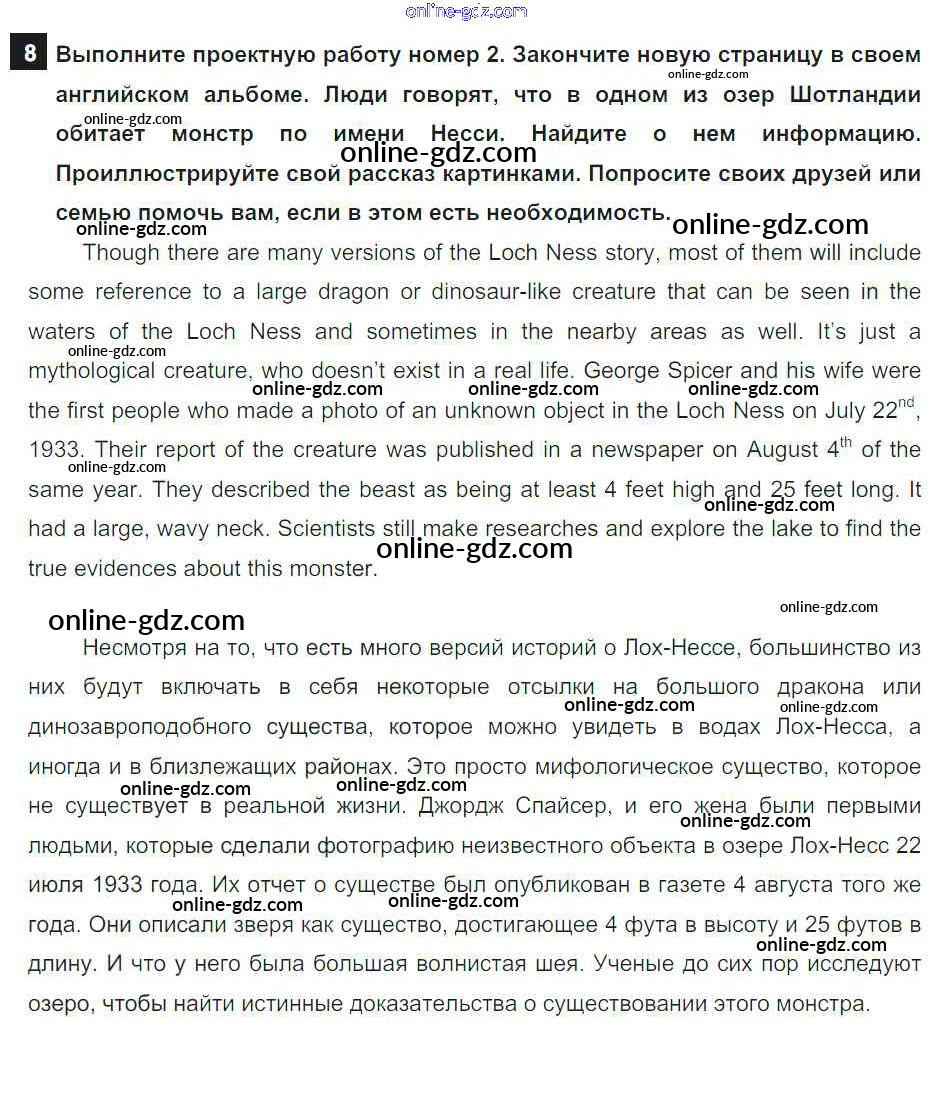 Готовые домашние задания по Английскому языку за 6 класс Учебник Афанасьева, Михеева Rainbow 2017 - Step 10 Unit 2 8