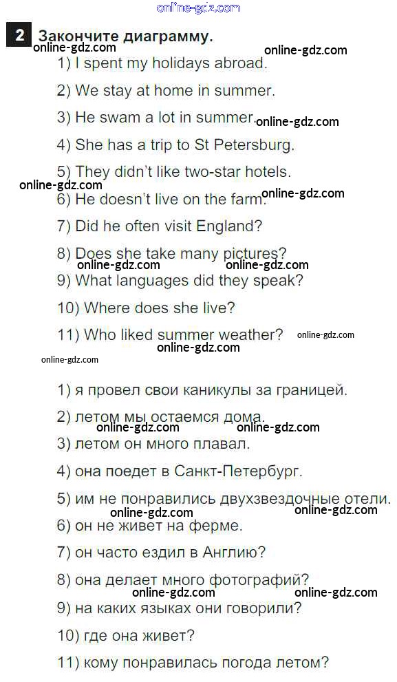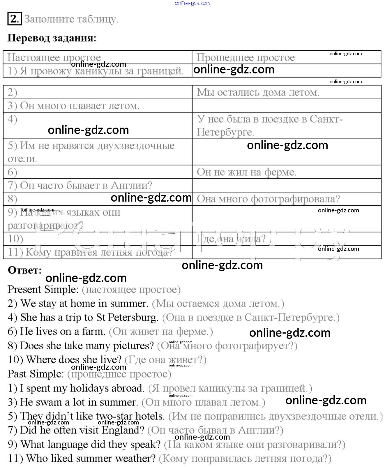 Готовые домашние задания по Английскому языку за 6 класс Учебник Афанасьева, Михеева Rainbow 2017 - Step 2 Unit 2 2