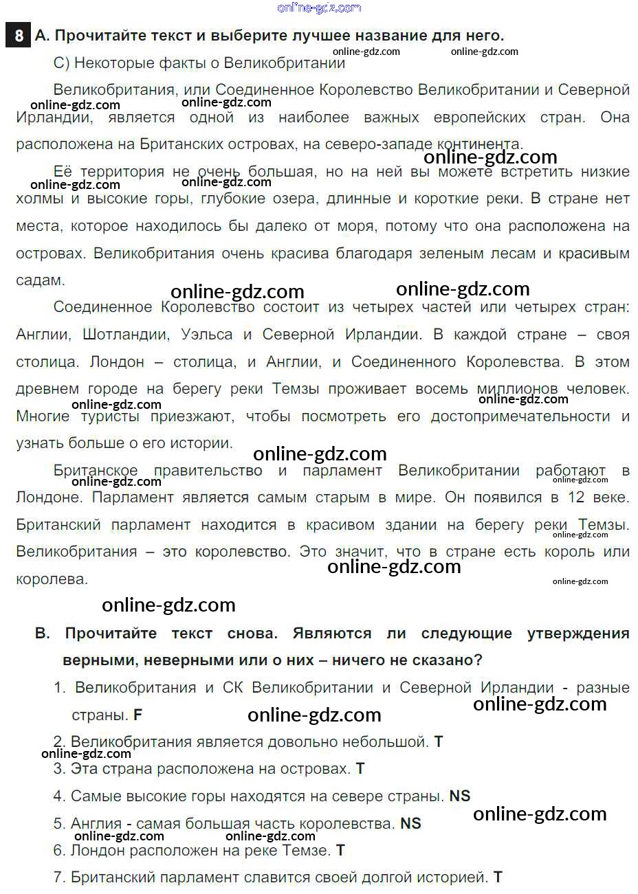 Готовые домашние задания по Английскому языку за 6 класс Учебник Афанасьева, Михеева Rainbow 2017 - Step 4 Unit 2 8