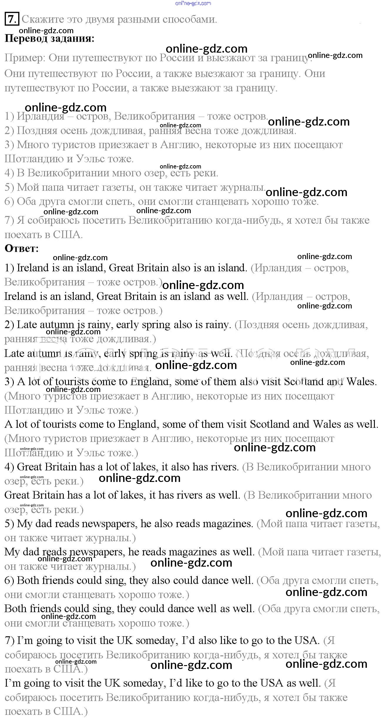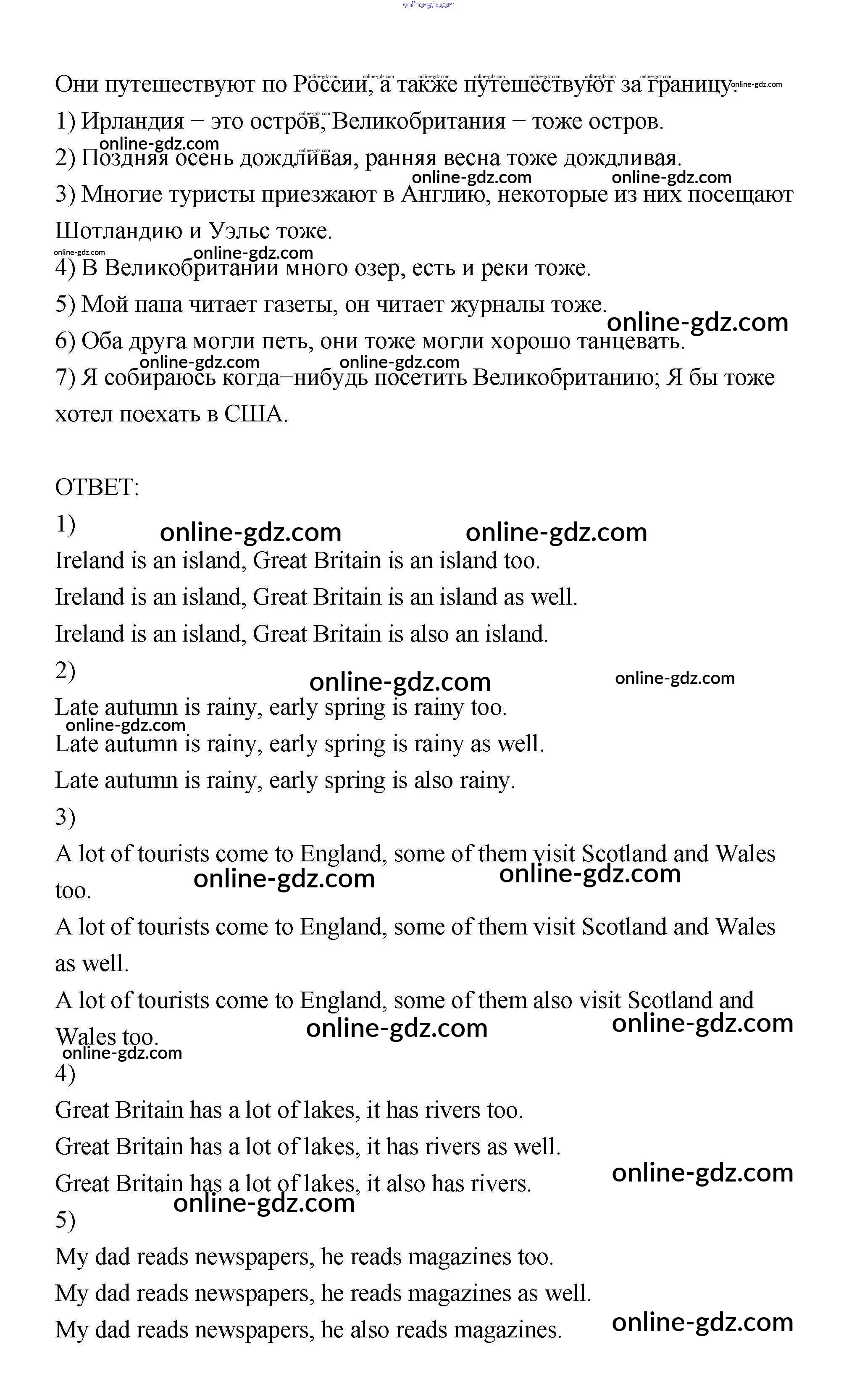 Готовые домашние задания по Английскому языку за 6 класс Учебник Афанасьева, Михеева Rainbow 2017 - Step 5 Unit 2 7