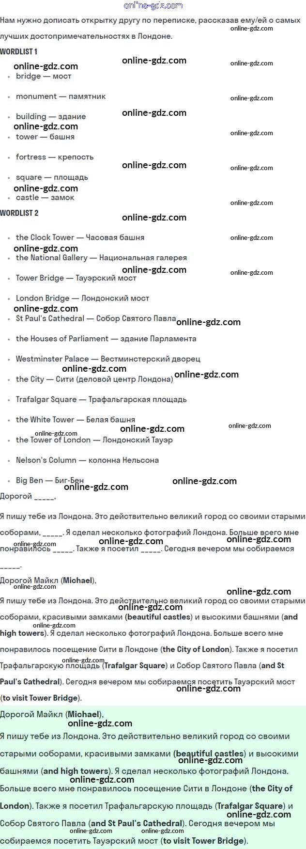 Готовые домашние задания по Английскому языку за 6 класс Учебник Афанасьева, Михеева Rainbow 2017 - Step 6 Unit 2 11