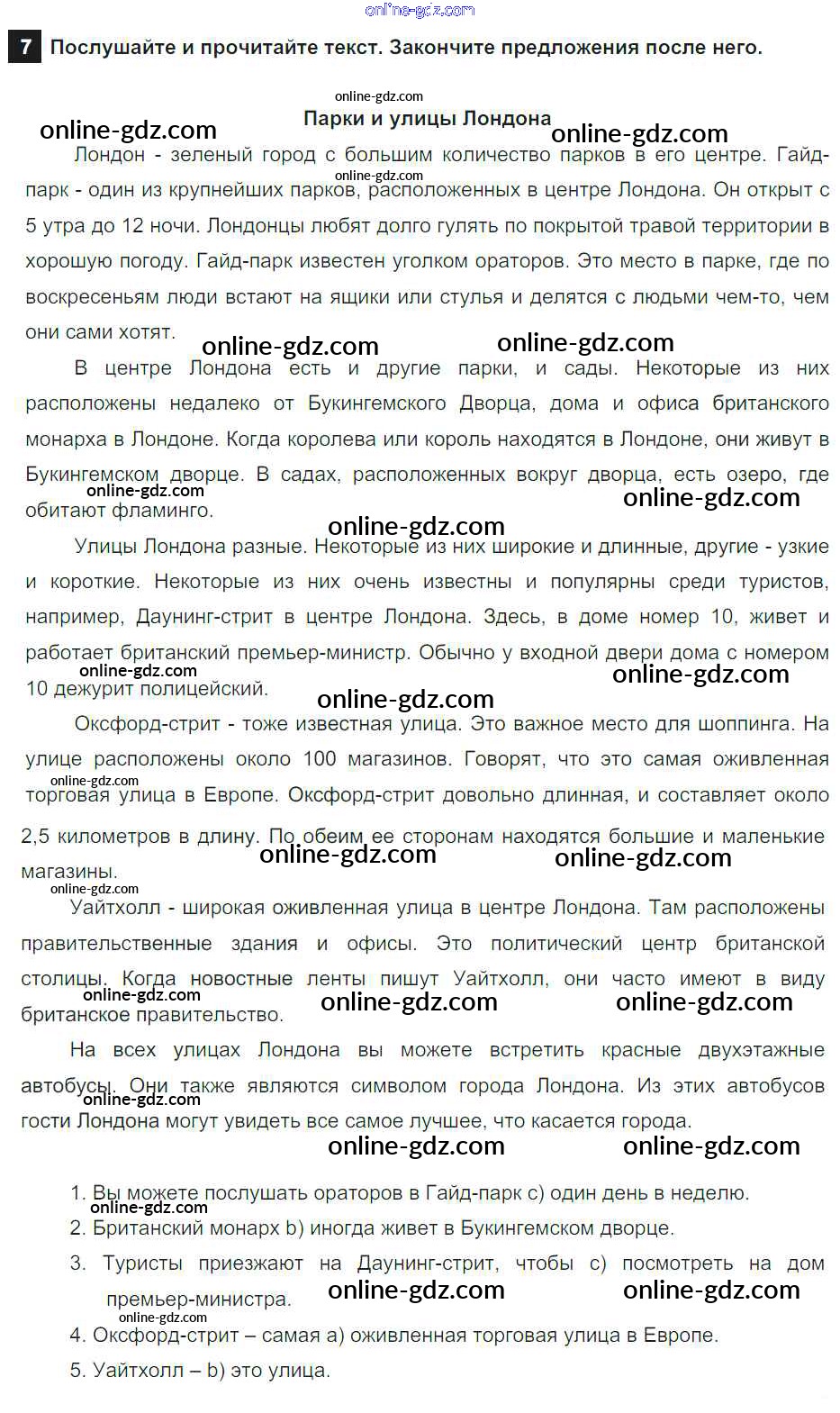 Готовые домашние задания по Английскому языку за 6 класс Учебник Афанасьева, Михеева Rainbow 2017 - Step 7 Unit 2 7