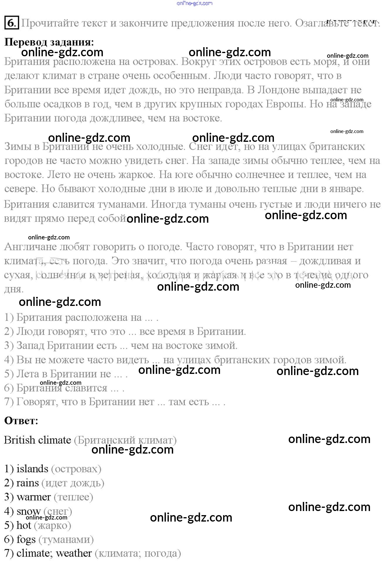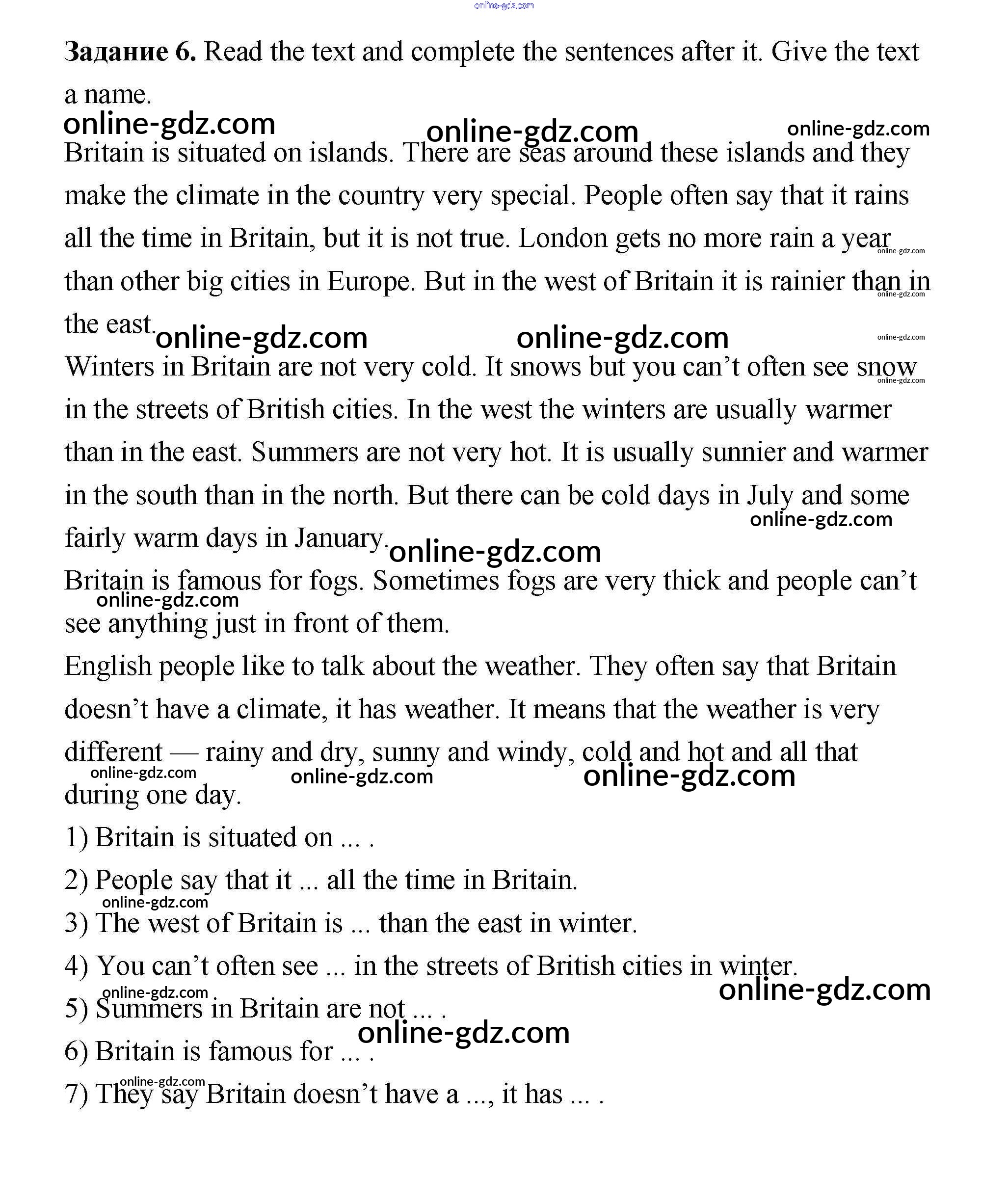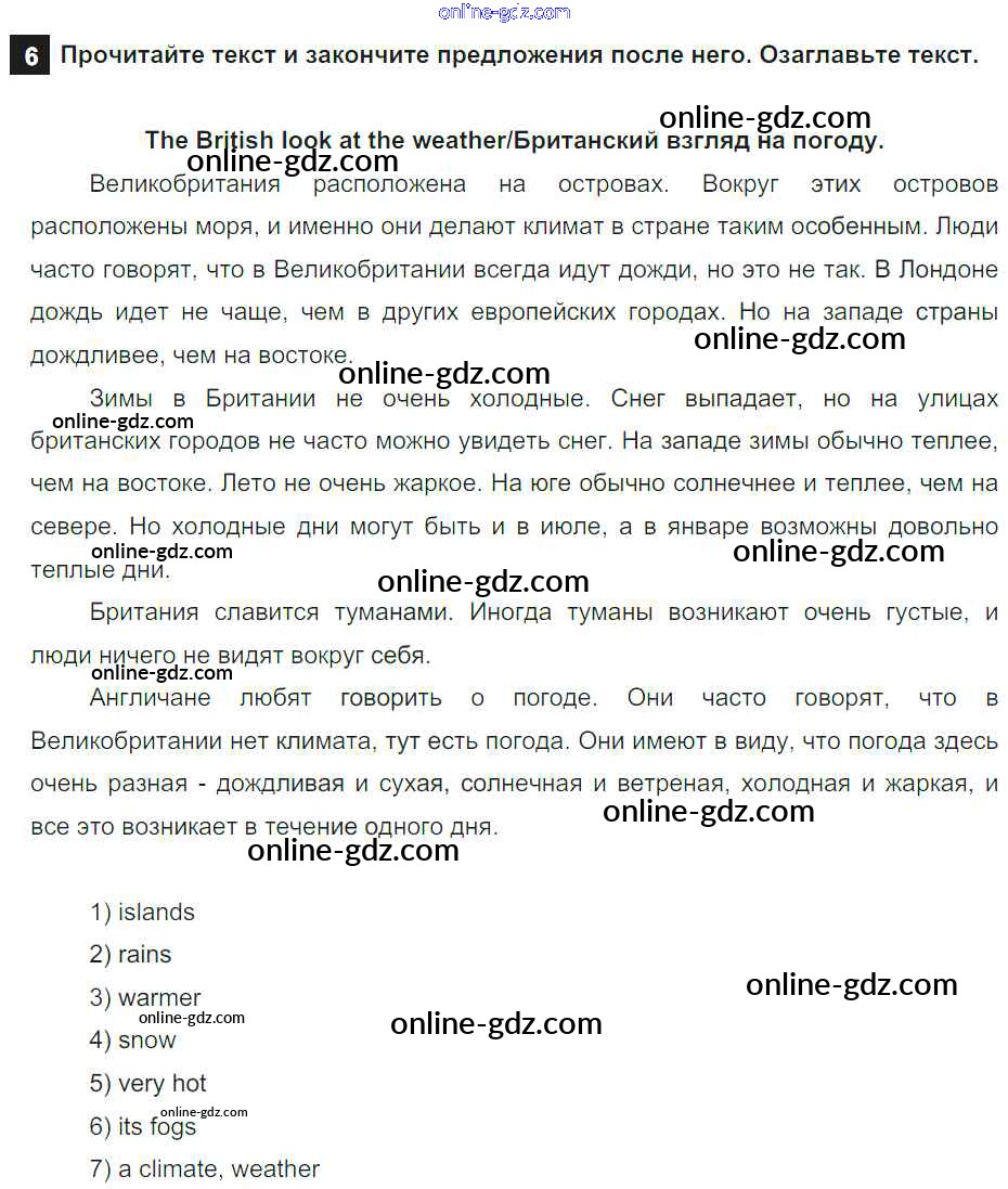 Готовые домашние задания по Английскому языку за 6 класс Учебник Афанасьева, Михеева Rainbow 2017 - Step 8 Unit 2 6