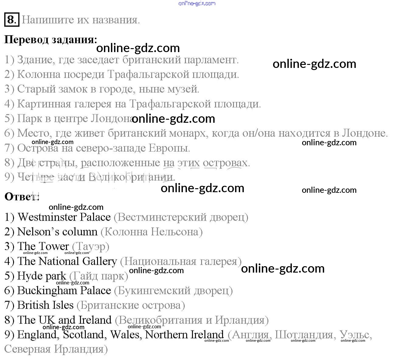Готовые домашние задания по Английскому языку за 6 класс Учебник Афанасьева, Михеева Rainbow 2017 - Step 8 Unit 2 8