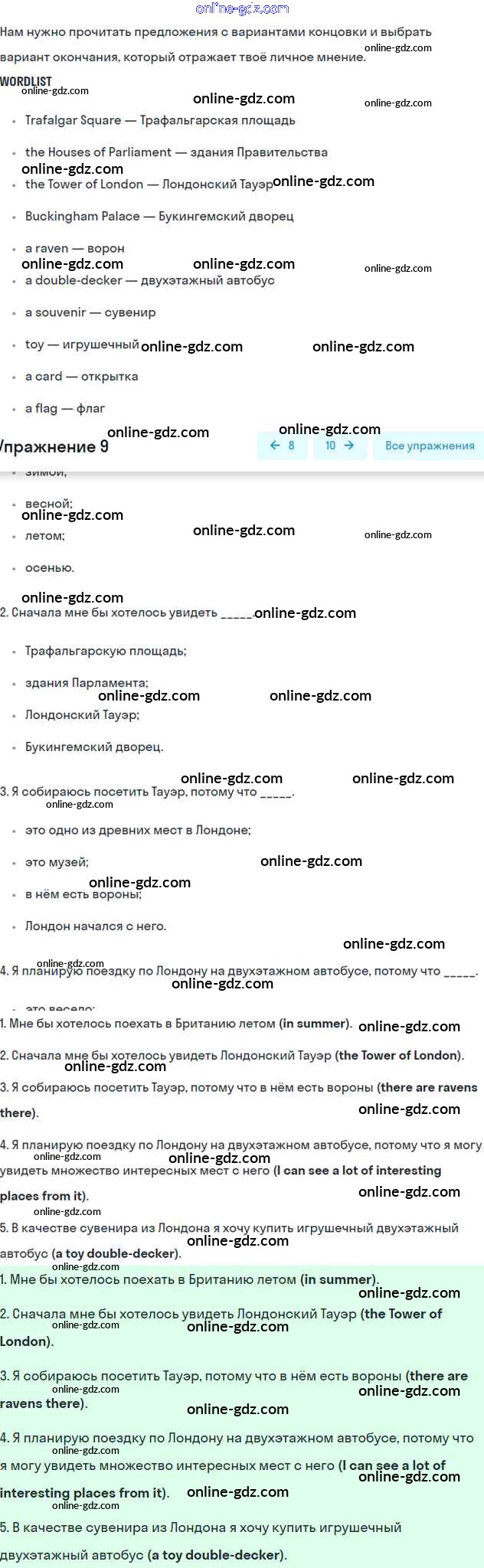 Готовые домашние задания по Английскому языку за 6 класс Учебник Афанасьева, Михеева Rainbow 2017 - Step 8 Unit 2 9