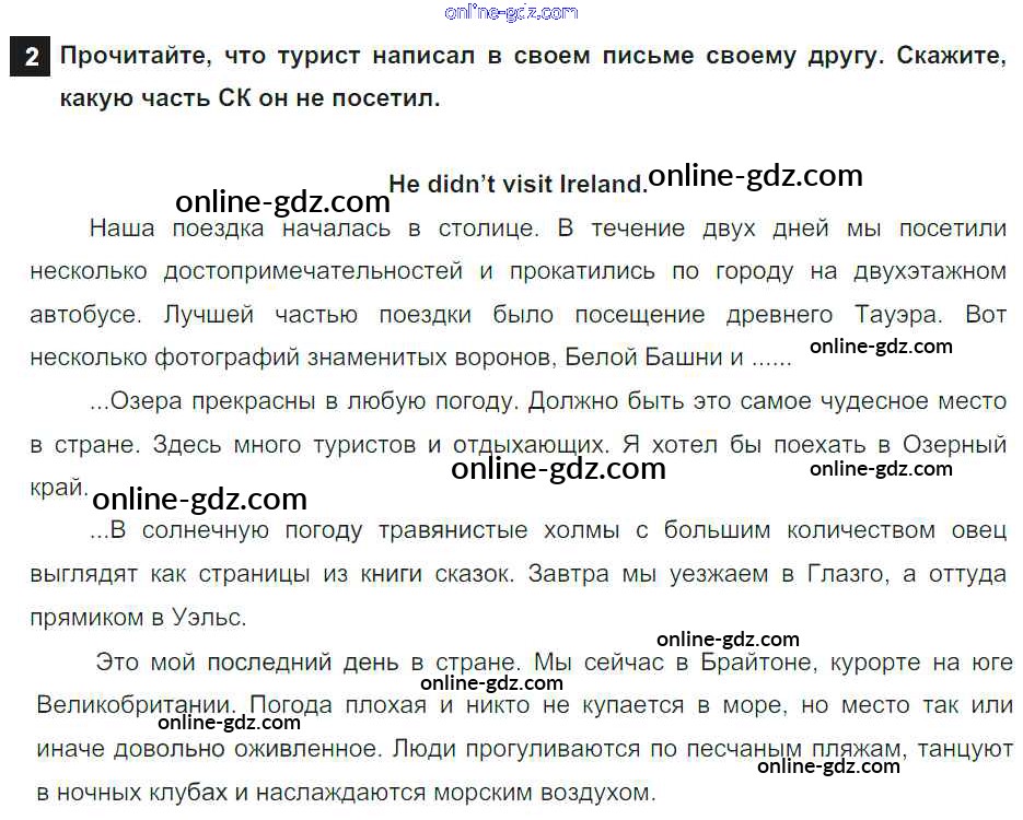 Готовые домашние задания по Английскому языку за 6 класс Учебник Афанасьева, Михеева Rainbow 2017 - Step 9 Unit 2 2