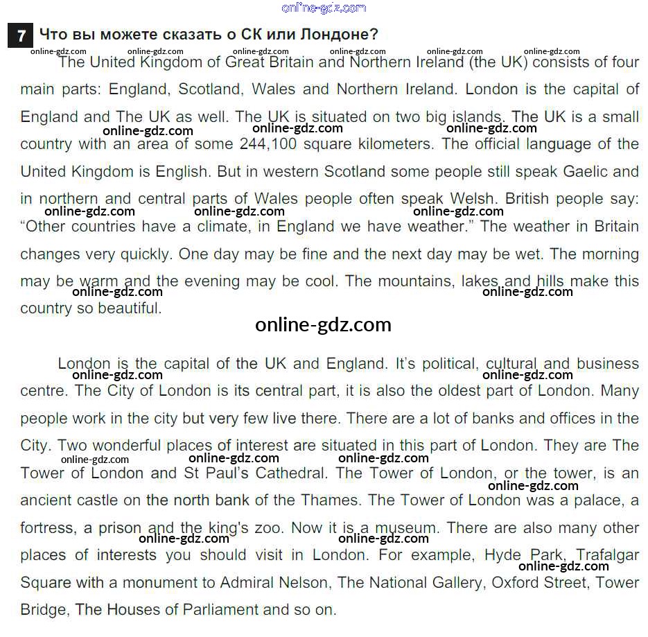 Готовые домашние задания по Английскому языку за 6 класс Учебник Афанасьева, Михеева Rainbow 2017 - Step 9 Unit 2 7