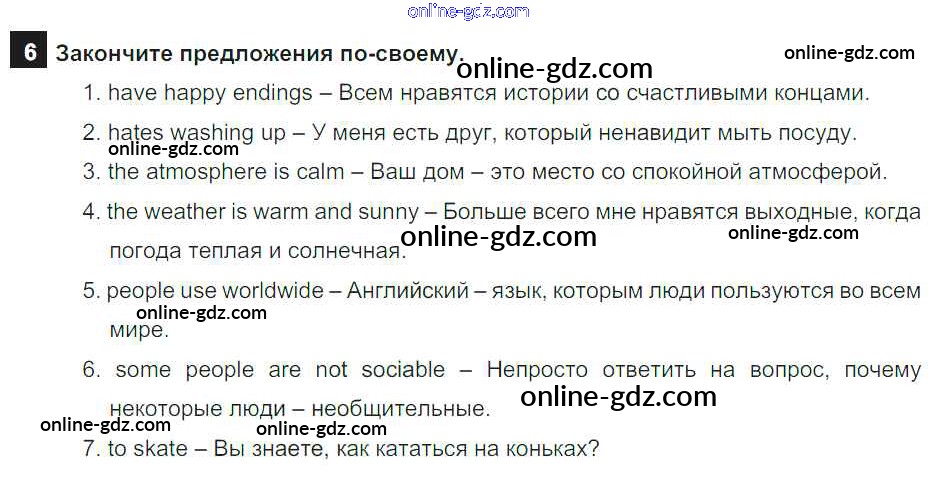 Готовые домашние задания по Английскому языку за 6 класс Учебник Афанасьева, Михеева Rainbow 2017 - Step 1 Unit 3 6