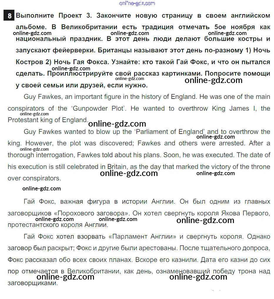 Готовые домашние задания по Английскому языку за 6 класс Учебник Афанасьева, Михеева Rainbow 2017 - Step 10 Unit 3 8